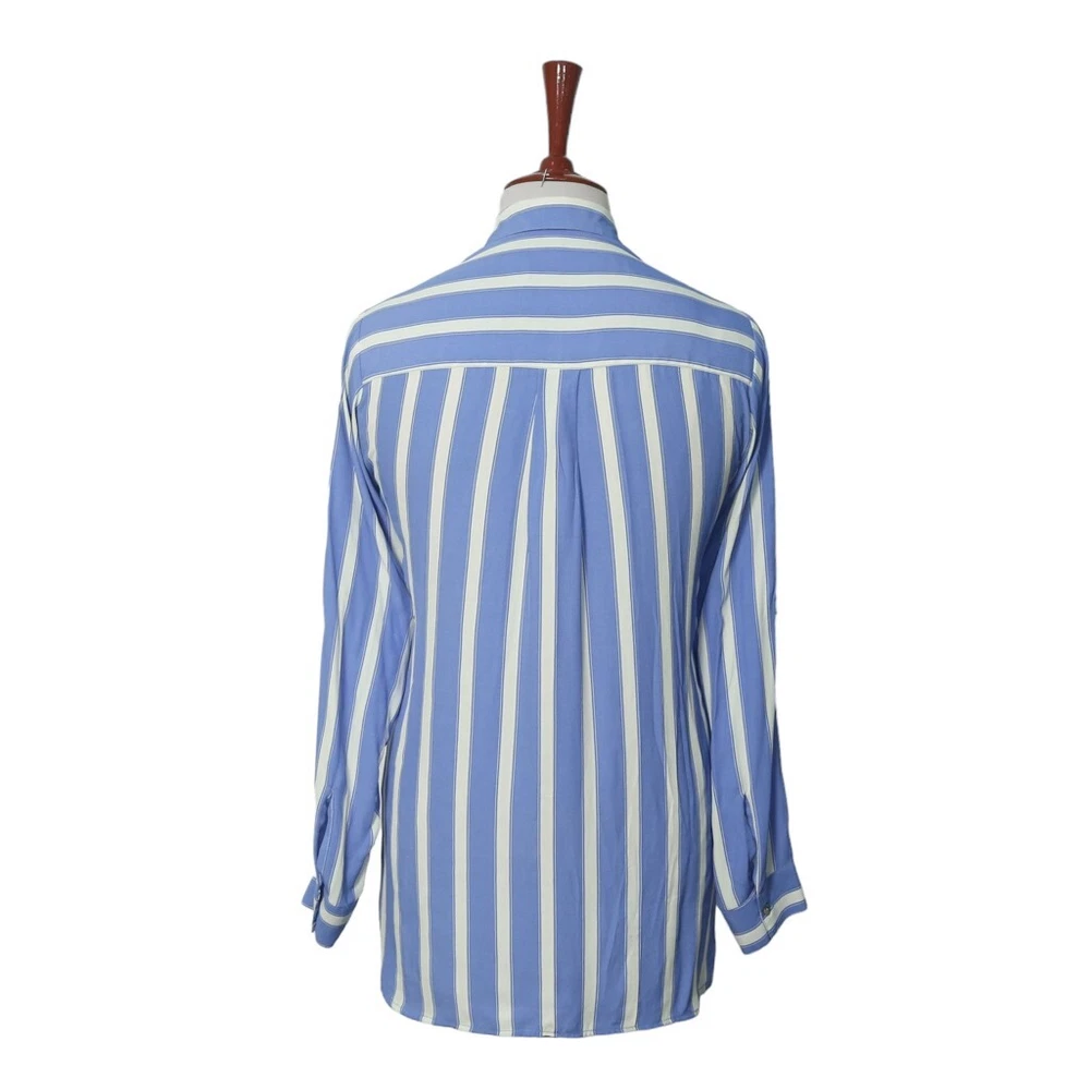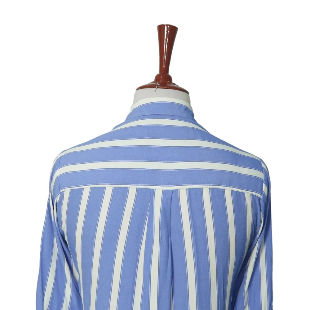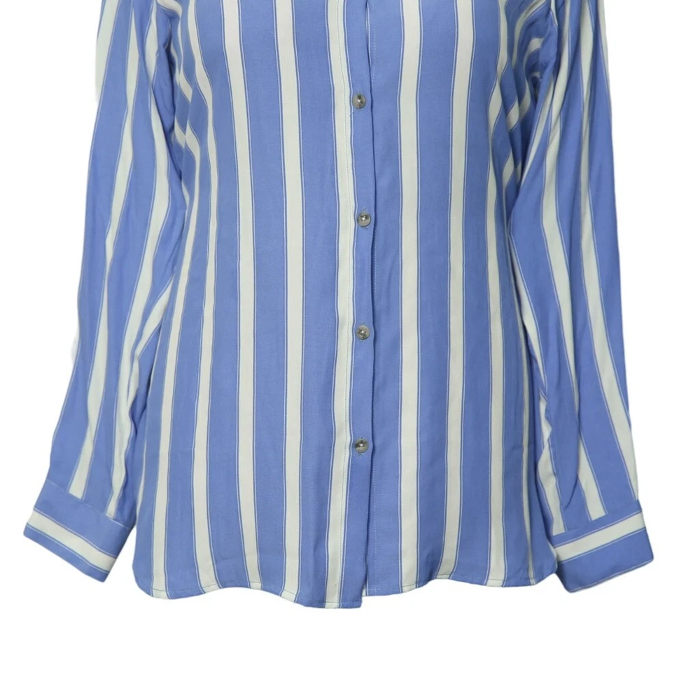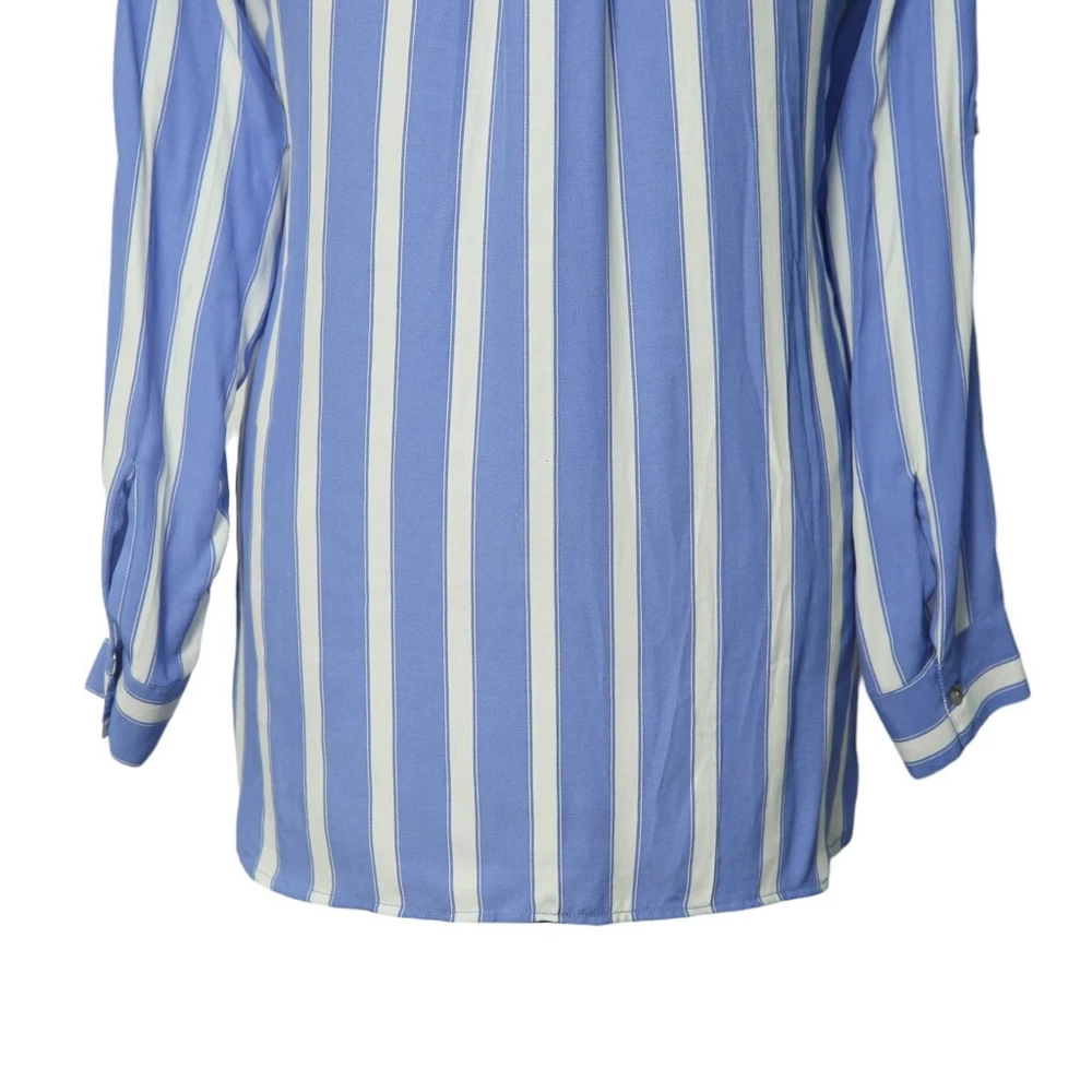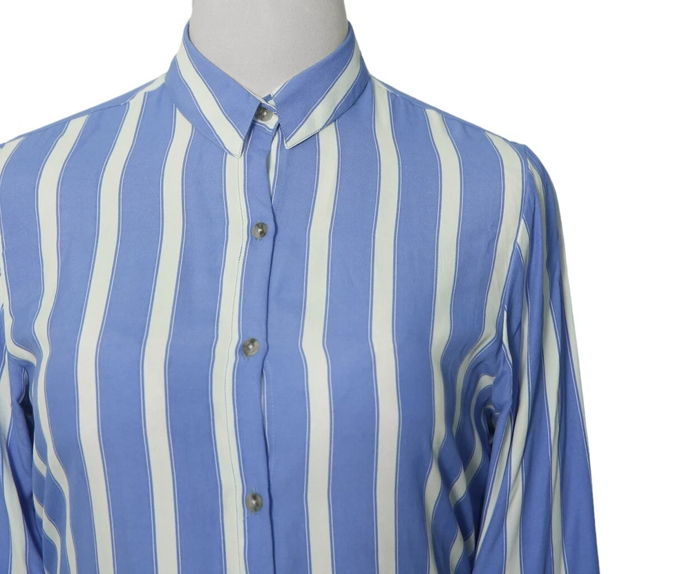 Womens Silky Shirt Button Up Blue White Striped Summer Lightweight Tunic Medium