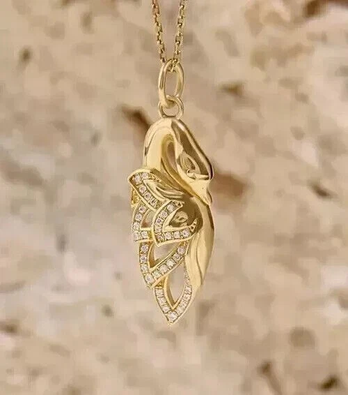 Women's Stunning Charm Pendant Round Simulated Diamond In 14K Yellow Gold Plated