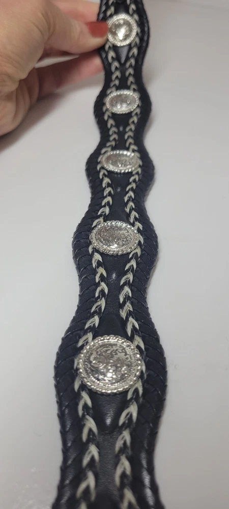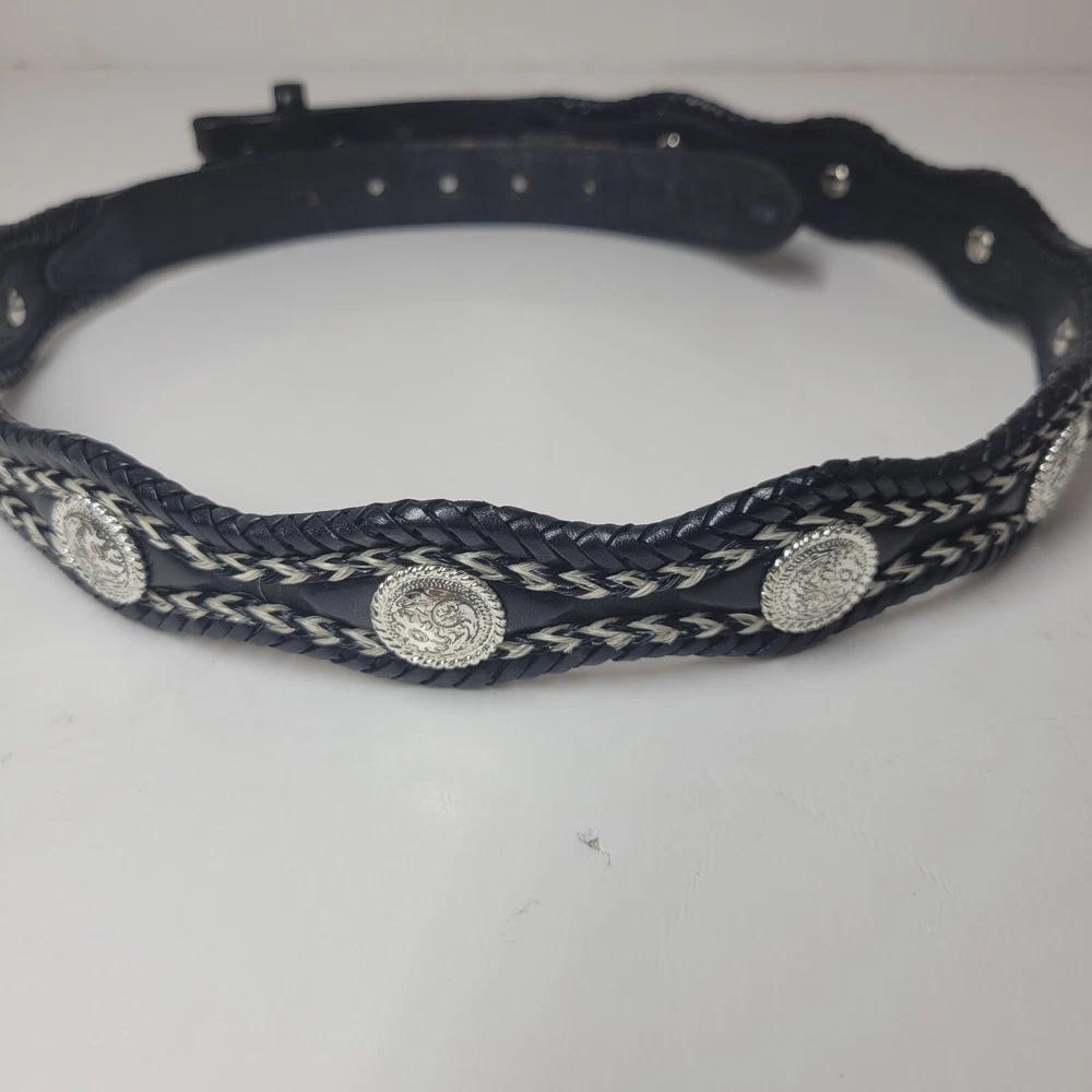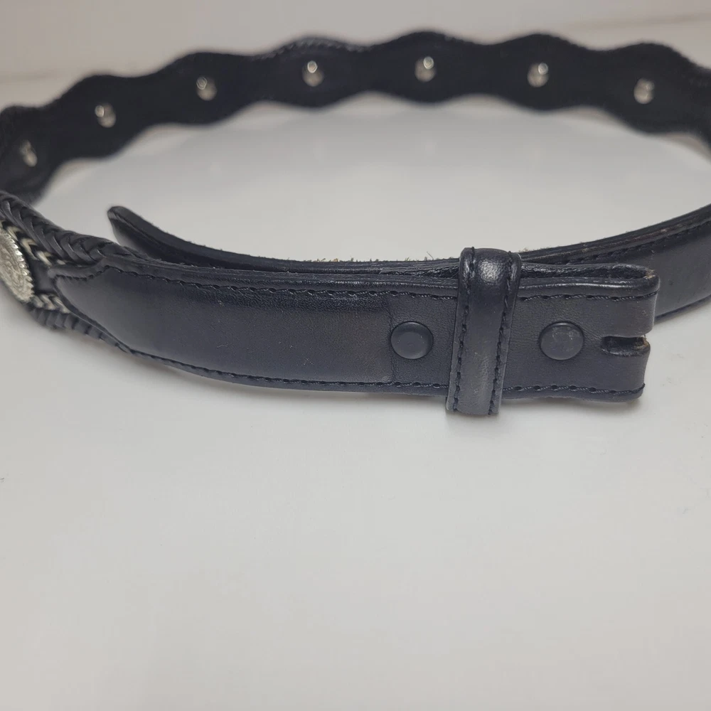 Womens Nocona Black Genuine Leather Belt Silver Studded Size 32