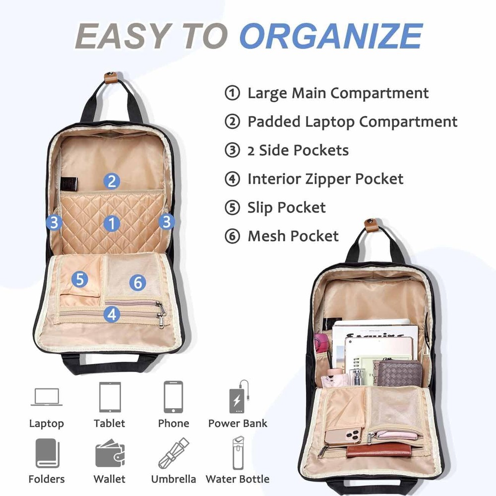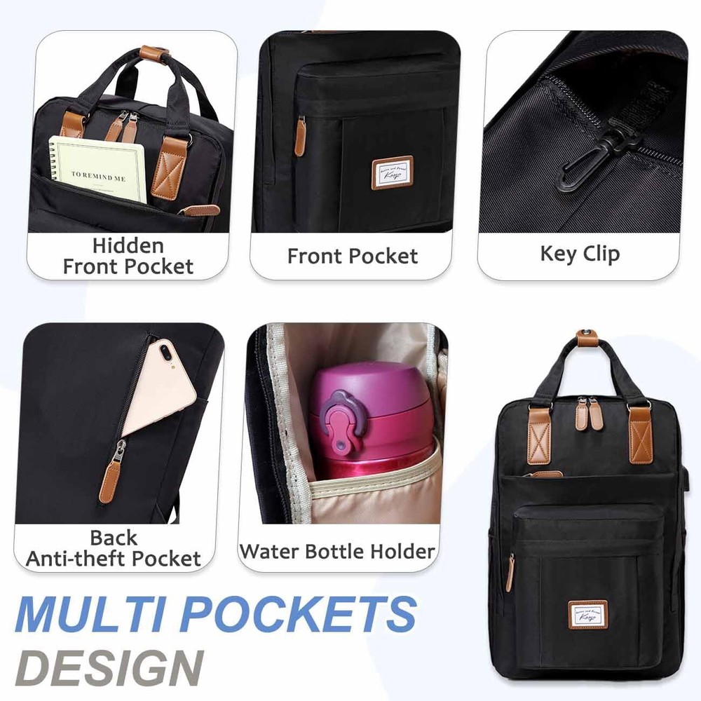 Backpack for Girls, 15.6" Water Resistant Women's Laptop Backpack Fashion School Bag with USB Charging Port for Travel Work, Pink and Grey PRODUCT DESCRIPTION PRODUCT FEATURES High Quality: backpack is made of high quality, water-resistant and soft polyester material. The shape of this fashion backpack is rectangular, with two top leather buckle handles and a reinforced bottom. With a built-in USB cable design and two-way zippers wide opening design, you could charge your phone through the USB charging port on-the-go and take a quick access to your necessaries. Considerate Designs: The padded laptop compartment is really convenient for you to carry your 15.6 inch laptop and you could take your laptop out without messy searching. Durable top leather handle, smooth SBS zippers and padded straps ensure a comfortable use for you in this casual backpack. You can use it to organize the stuffs in an orderly manner because of Muti-Pockets design. Its humanized design helps you when you go to work and traveling, making your journey more convenient! Well Organization: The padded laptop compartment keeps your laptop safe, the main compartment fits you binders, A4 files, textbooks. There are 1 slip pocket, 2 mesh zipper pockets and 2 internal side pockets inside the bag for your personal belongings. Front zipper compartment is designed for quick access to your necessaries. One outer zipper front pocket is with a key clip and there is also a secured pocket on the back for your wallet. Two side external pockets for your bottle and umbrella. Large Capacity: Dimensions: 29x40x16cm/11.5x15.7x6.3in (WxHxD); Padded Sleeve: 28x28cm/11.x11in (WxH), Front Pocket:20x23cm/7.9x9in (HxW), Water Bottle Pocket:13.5x18cm/5.3x7in (WxH), Back zipped pocket:16x19cm/6.3x7.5in, Capacity: 18.5L.Weights:0.7KG/1.5LB. This capacity is large enough for a travel backpack, gym bag, hiking backpack, and the several pockets are really useful. Ideal Gift: This travel backpack is suitable for those who are looking for a classic and durable backpack. Besides being used as laptop backpack, it can be used as a casual dayback.THIS ITEM IS NOT INTENDED FOR USE BY CHILDREN 12 AND UNDER. π SHIPPING We offer fast and reliable shipping. Your order will be processed within 1-2 business days. International shipping is available to most countries. All items are securely packaged to ensure safe delivery. π RETURNS If you are not satisfied with your purchase, you can return it within 30 days for a full refund. Refunds will be processed to your original method of payment. Items must be returned in their original condition and packaging. π³ PAYMENT We accept payment via PayPal, credit cards, and other payment methods supported by eBay. Please ensure your payment method is correct and updated to avoid any delays in processing your order. β FEEDBACK We value your feedback. If you are happy with your purchase, please leave us a positive review. π CONTACT US If you have any questions or need further assistance, please feel free to contact us through eBay messages.
