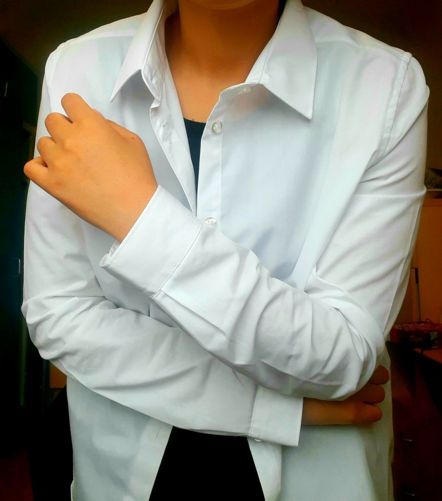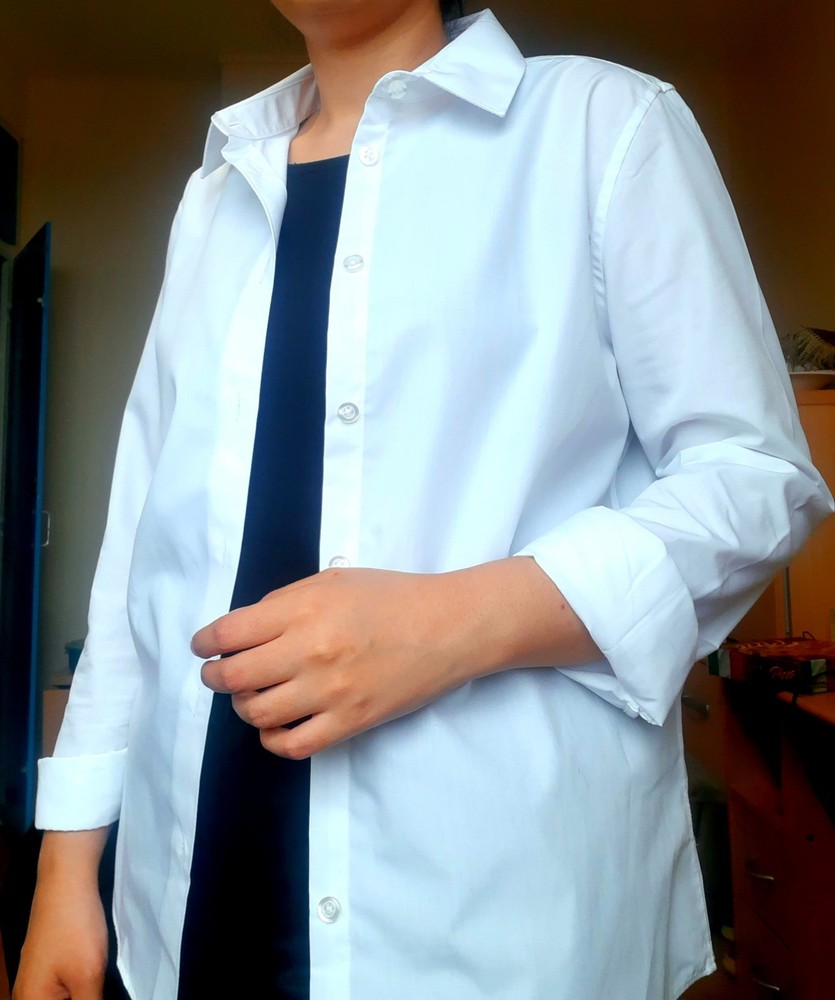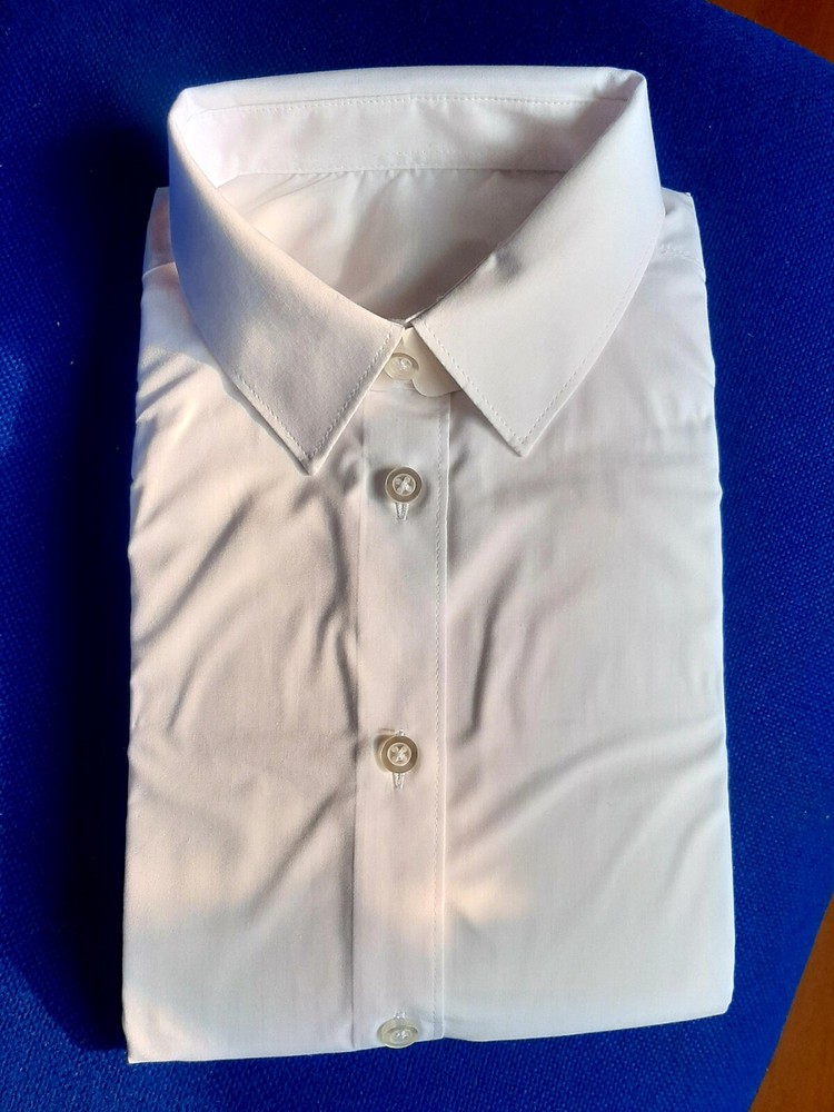 This white shirt is a stylish and versatile addition to any woman's wardrobe. Made from a blend of polyester and cotton, it offers a comfortable fit with a regular size S. The long sleeves and collared neckline add a touch of sophistication, making it suitable for both casual occasions, office wear or uniform for 15 to 16 year old. Length 60cmSleeve length 63cmShoulder 37cm