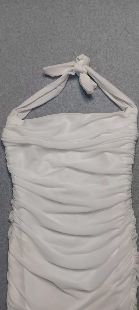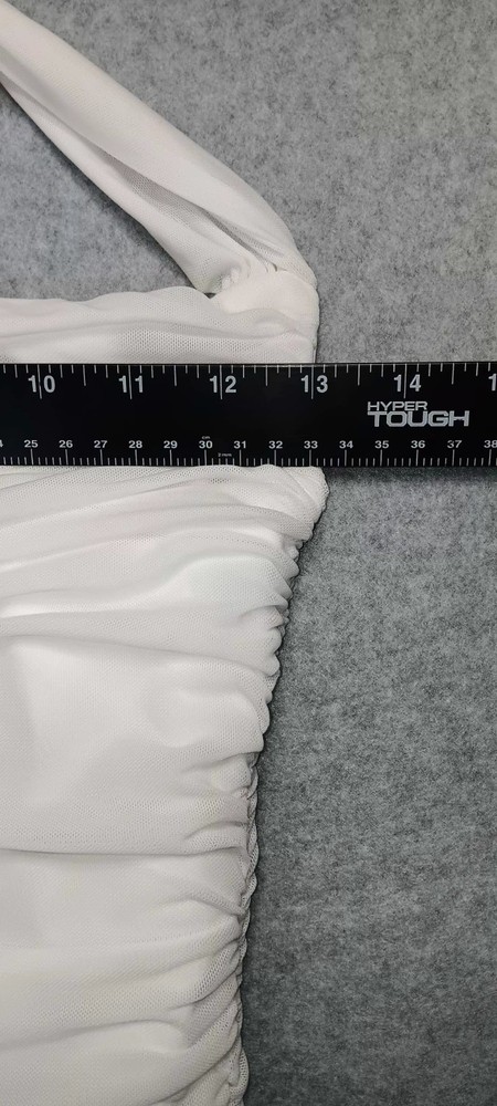 This women's white ruffled mesh overlay mini dress in size small is perfect for formal parties or cocktail events. The dress features a sleeveless design with a strapless style and a pullover closure. The mesh fabric with ruffle accents adds a touch of elegance to the short dress, making it an ideal choice for summer and spring occasions. Made in China, this dress is a stylish and chic option for any fashion-conscious woman looking for a versatile and eye-catching outfit. 5.