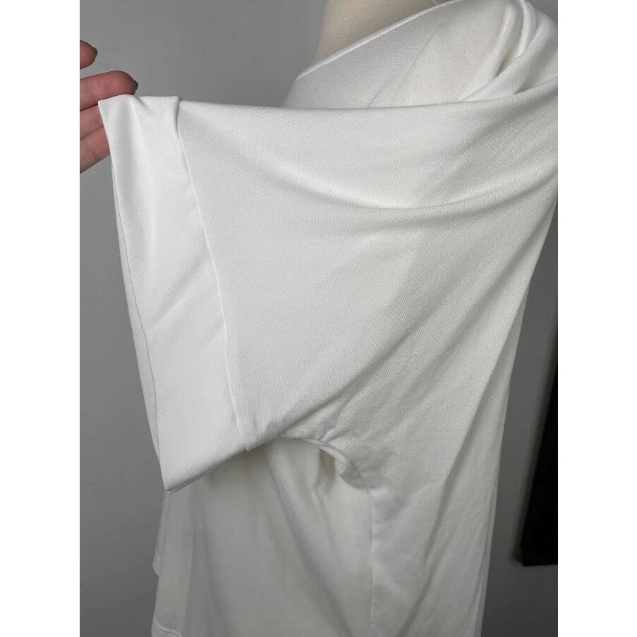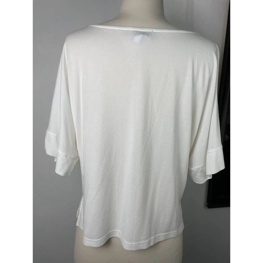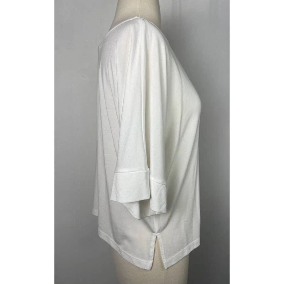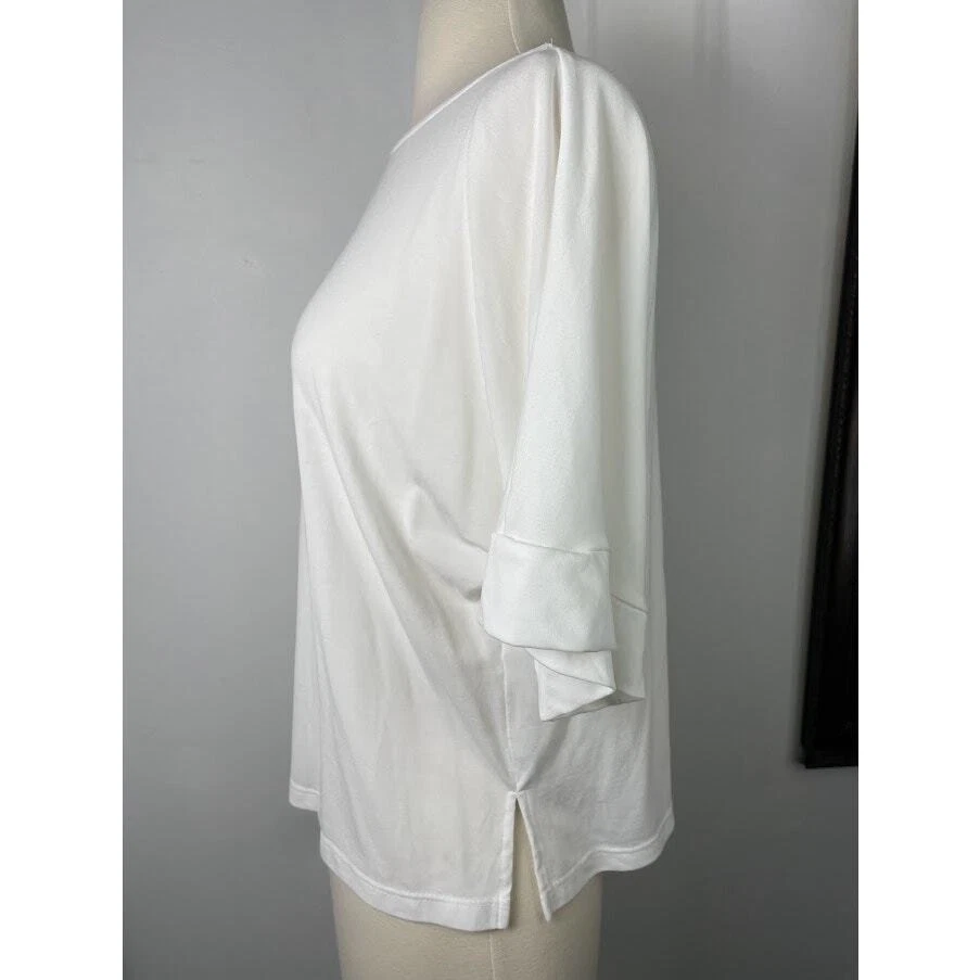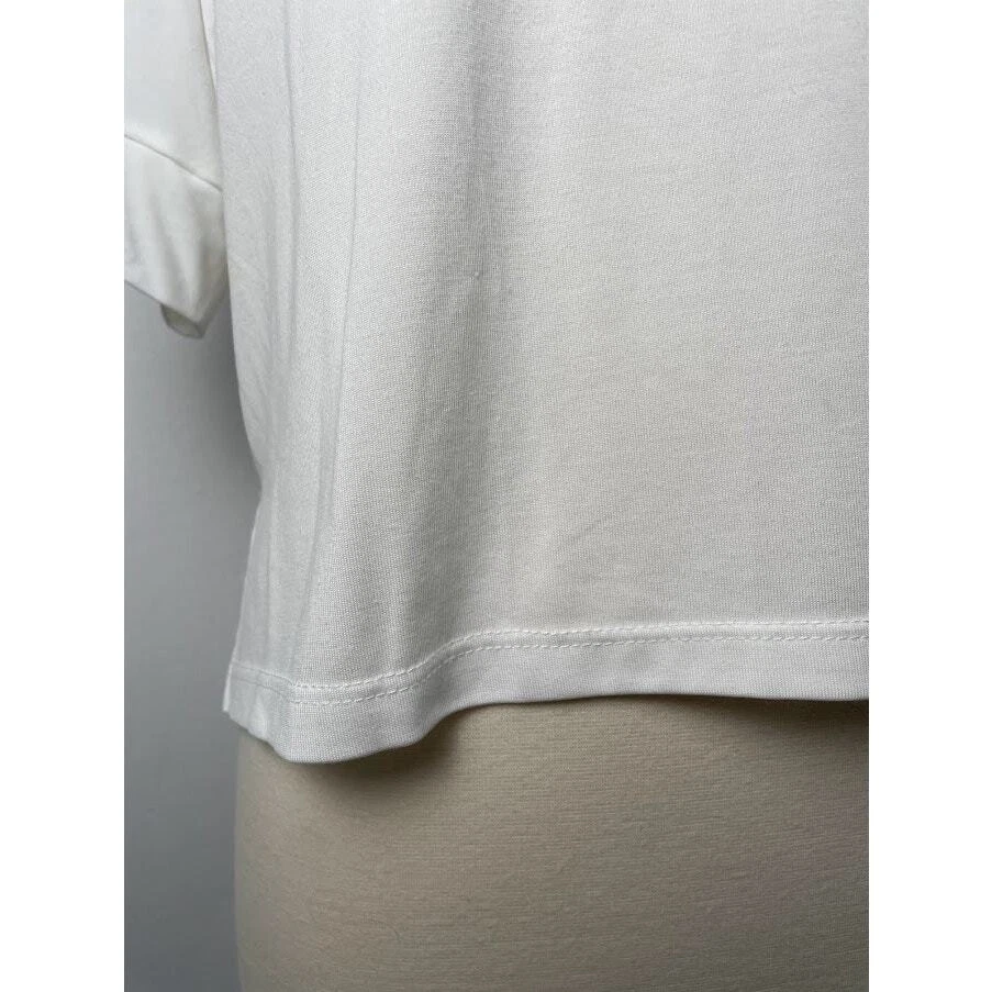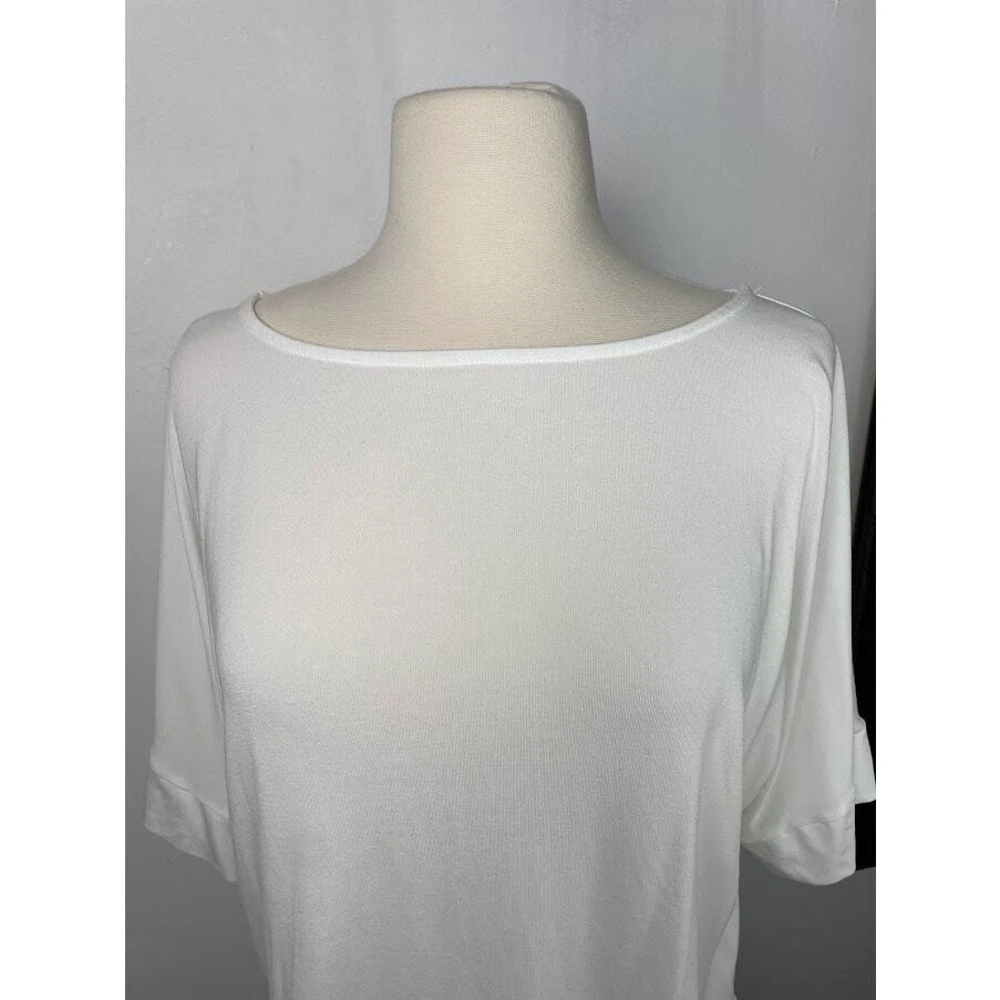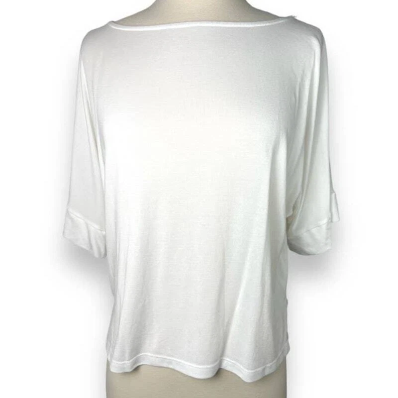 Womens White Top Blouse Size XS Boat Neck Short Sleeve Top Light Weight Shirt Size XS (runs big) Pit to Pit 20in Length 21in Modal Blend Super Soft Very Good Condition No Known Flaws