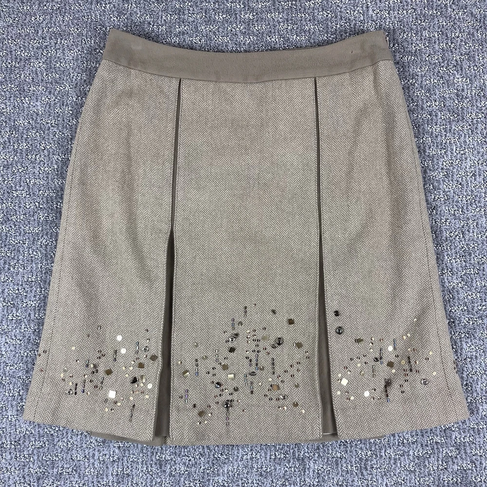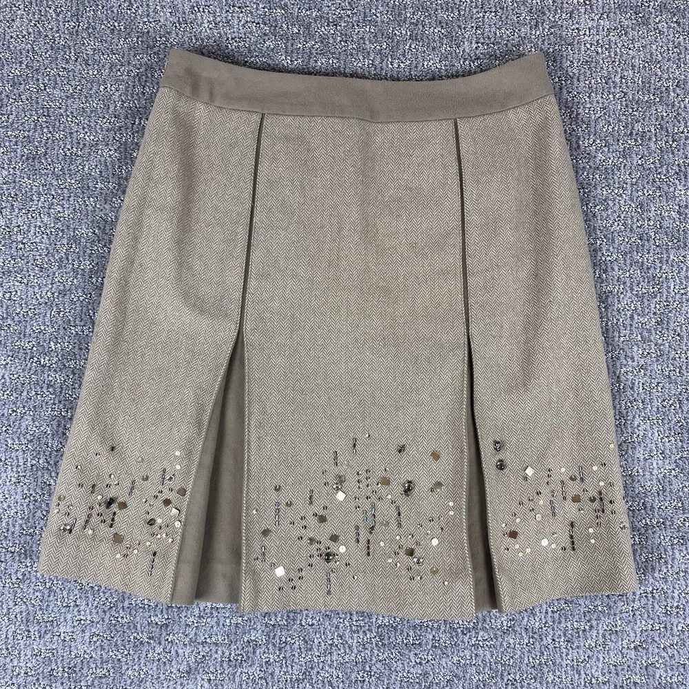 LOFT Womens Skirt Rayon and wool blend Knee length Pleated Beaded Tweed Academia Preppy Office Career Very good preowned condition. There is one faint spot on the waistband as shown in photo #4 Measurements in photos Size 8
