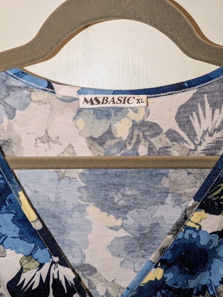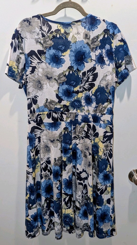 Women's XL Midi-Dress w/ Pockets, White w/ Floral, Short Sleeve, A-Line Dress