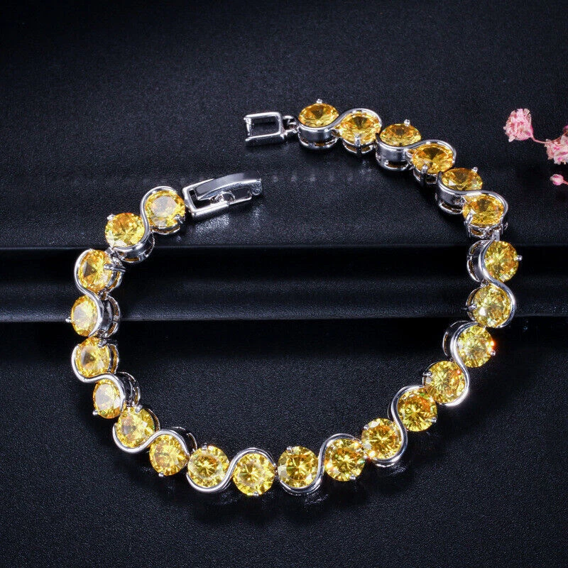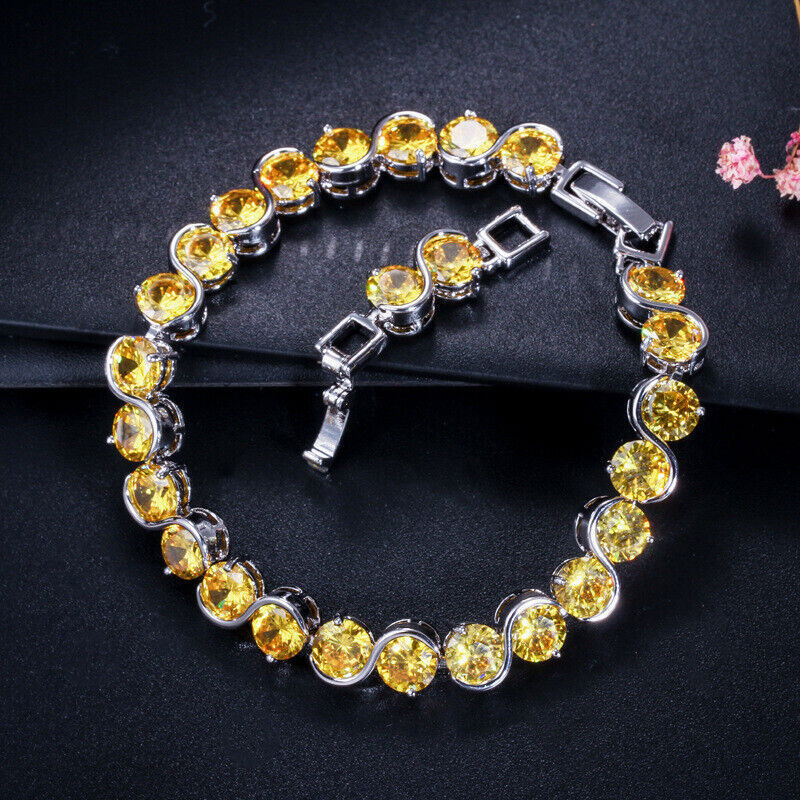Luxury Holiday Xmas Jewelry Yellow Citrine Gems Women Girls Silver CZ Bracelet Specifications : 1. Condition: New 2. Material : Cubic Zirconia 3. Bracelet Length :17.6 cm or 20.6 cm 4.Metal Color : Silver Plated Features : 1. Cubic Zirconia High Quality Material - Diamond-like Brilliance , Prong Setting and CZ Stone are stable. 2. It will be an ideal gift for your girlfriend, wife, fiancee, daughter, mother, your special someone, or just yourself. 3. Perfect for many Occasion: Daily wear , Shopping , Anniversary , Party ,Wedding , Prom, etc. Package Includes: 1Pc Bracelet Payment Delivery details Terms of sales & Feedbacks About us & Contact us Our commitment Payment 1. We only ship item to your Ebay verified address . Please Make sure all address are the same 2.Please leave note in ebay when making the payment if you have any special request (colors/size). Delivery details We only send items to the registered eBay address.Items will be shipped within 2 business days from the date payment is received (not include public holiday and weekend) . As per eBay regulations, import duties, taxes, and customs charges are the buyer's responsibility. Please check with your country's customs office to determine what these additional costs may be prior to bidding or buying. Terms of sales & Feedbacks After-Sale Please contact us to request a return/replace/refund authorization .It will be best if you use ebay message to contact me. 1, Return and replacement request is available only the requests within 30 days after parcel received. 2, Returning the item as the same condition as received. Situation and solution Defectives ---Please contact us and provide a photo of the defective part. After situation confirmed,we will offer you refund/return/replacement according to the situation Not as Described ---Please contact us and provide a photo of the wrong part. After situation confirmed,we will offer you refund/return/replacement according to the situation Not Received ---Please undersatnding shipping on the way was out of our control ,because of the busy shipping season,holidays,bad weather or force majeure etc. It may be delay for days. But if it took too much time and not deliveried, Please message me, I will offer you solution for it. Feedbacks 1. If you are satisfied with our service, please leave us a + Good feedback and rate the details of the transaction (DSR) with a. . When you rate the shipping time part please take international transit into consideration.] Your recognition will make us more confident to develop business and serve you better. 2. Please contact us first if you have any problem with the items,we will solve it in time ! 3. Please do not leave Neutral or Negative Feedback before you contact us, Thanks For Your Business ! About us & Contact us Working time: Chinese time(Eastern eight zones):Monday to Friday ,9:00 am to 6:00 pm. We do not work on chinese legal holiday. Message reply: We will reply all messages within 24 hours of business time. Please contact us via ebay message, it was the best way for both you and us to solve problems. Any questions or anything you need, please feel free to contact us. Our commitment 1.Wholesale price will be offered to you if you need in bulk ! 2.About Size
