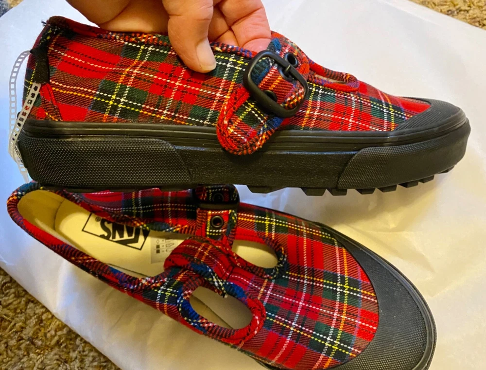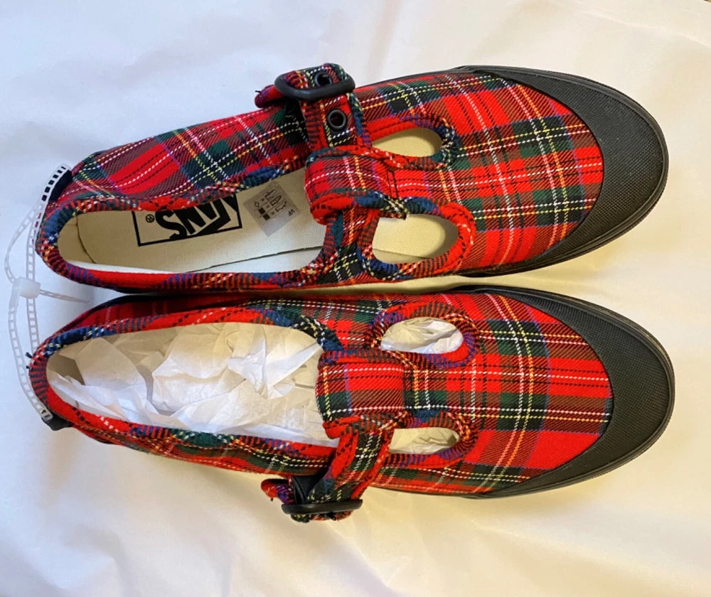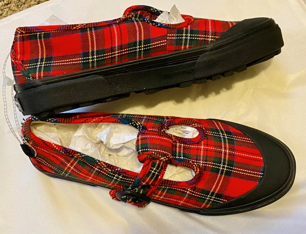 Elevate your shoe game with these stylish VANS Style 93 Mary Jane sneakers in a classic red plaid pattern . Perfect for women who want to add a pop of color to their everyday outfits, these shoes feature a low top shoe shaft style and slip-resistant sole for optimal comfort and safety. The lightweight design makes them ideal for walking, school, typing, and more. These VANS 93 Mary Janes are the perfect addition to any sneaker collection, with a standard shoe width and fabric upper material. The cushioned insole and rubber insole material provide additional comfort and support, while the logo accents add a touch of style. These shoes are a great choice for anyone who wants to add a touch of boho mod to their wardrobe. NEW without box .. sold out and hard to find Women's US size 9 (Men's US size 7.5) (Euro size 40) Medium width ... Run true to size imo no smoking no cats fast and careful shipping