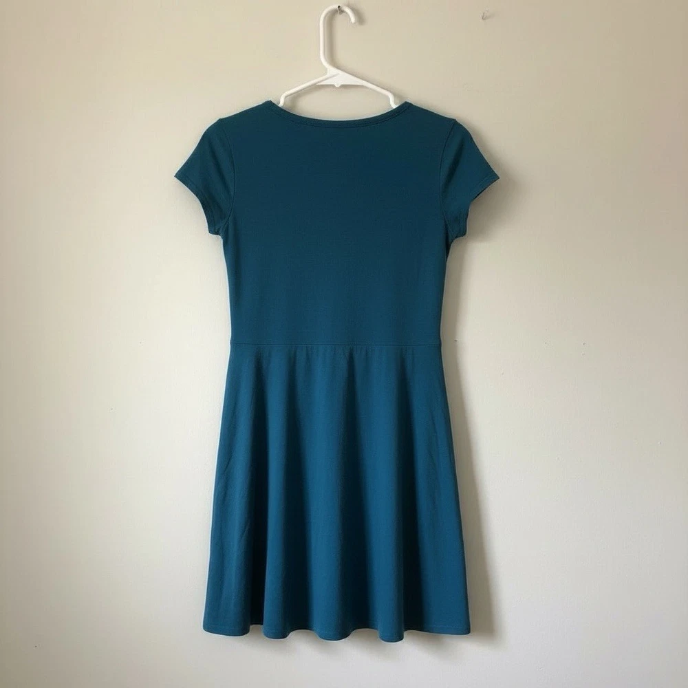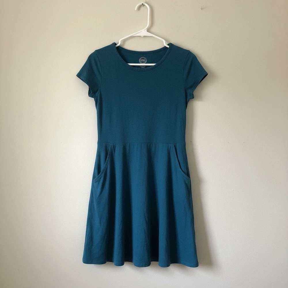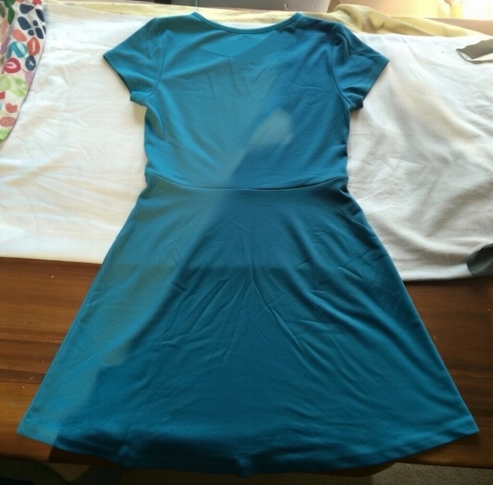 Wonder Nation girls’ teal short-sleeve dress with side pockets. Comfortable everyday dress with a fitted top and flared A-line skirt for easy movement. Soft, stretchy fabric makes it great for school, play, or casual outings. Can be worn on its own or layered with leggings and a jacket. Details: • Brand: Wonder Nation • Size: Girls 6 / 6X (tag confirmed) • Color: Teal • Style: Short sleeve A-line dress • Features: Side pockets, round neckline, stretchy fabric Condition: Excellent condition. No stains, holes, fading, or damage. Please review photos for exact condition and sizing. Message me with any questions before purchasing.