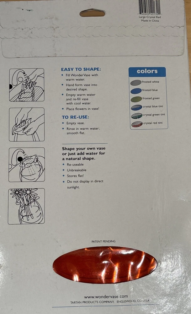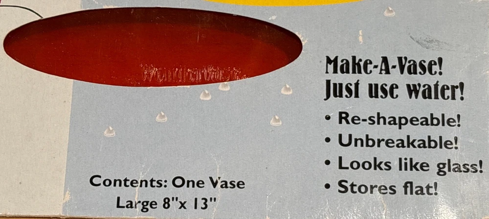 WonderVase Make-A-Vase Shapeable Unbreakable Crystal Red Large 8" x 13" Make A Vase! Just Use Water! Re-shapable! Unbreakable! Looks like glass! Stores Flat! To upcycle, I reuse shipping material as often as possible. Buy more from my store and save on shipping.