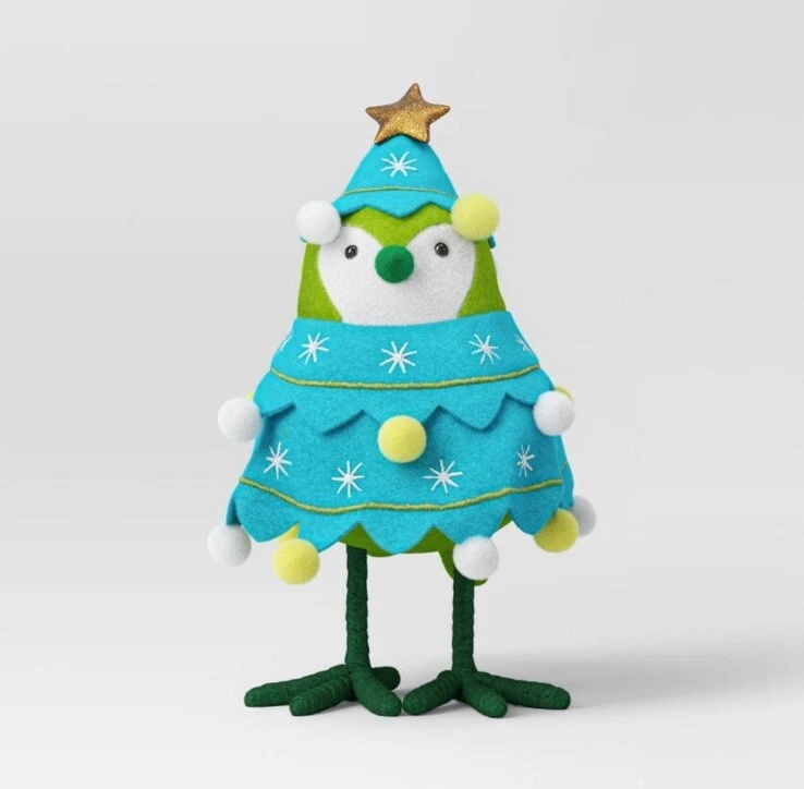 Transform the look of your festive decor with the Featherly Friends™ 'Sparkles' Fabric Bird Figurine Dressed as Christmas Tree from Wondershop™. This 7.25” figurine showcases a featherly bird dressed up as a Christmas tree with a star topper and pompoms for a decorative appeal. Made of soft fabric, this decorative figurine makes a beautiful accent piece on your tabletop.