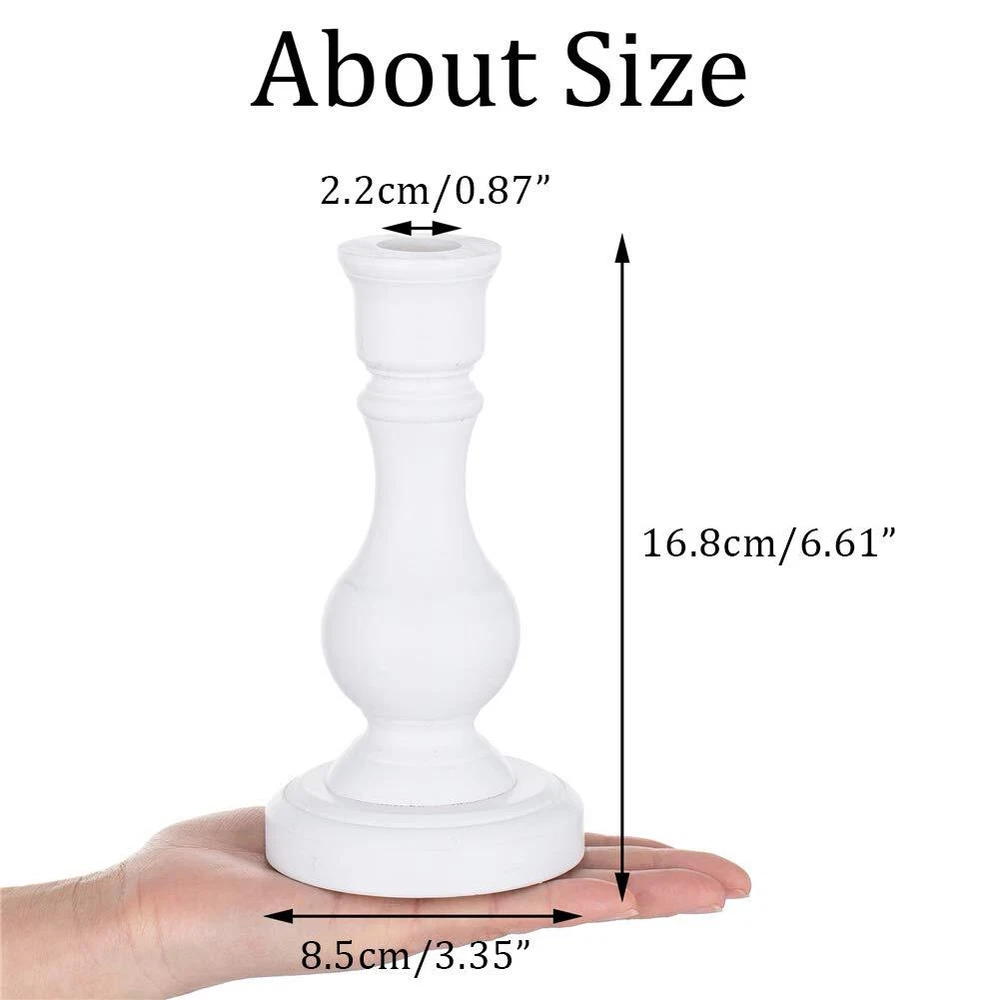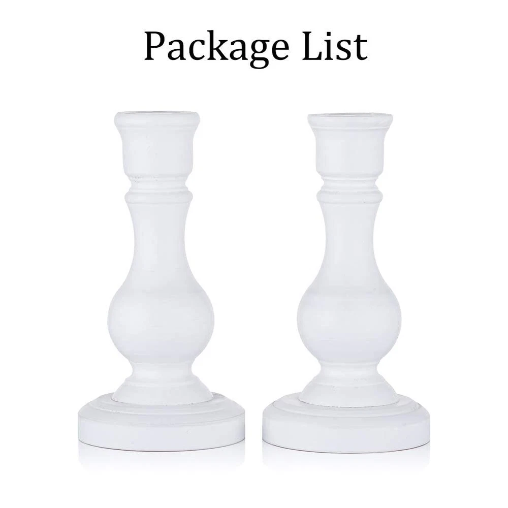 Sziqiqi Wood Candle Holders for Candlesticks - Set of 2 White Wooden Taper Candle Holder for Home Dinner Table Fireplace Mantel Entryway Decoration Wedding Centerpiece 6.7inch SIMPLE YET ELEGANT: solid wood, simple, rustic yet elegant candleholder set, fit your nostalgic farmhouse decor, a nice addition to your coffee table, countertop, living room decor EXCELLENT FINISH: beautiful finish and warm tone, feel warmer than metal or glass candle holders; 4 colors available for choice, white, pink, blue and brown, add nice color to your home decoration PROPER SIZE: 16.8CM/6.8’’ tall, does not dominate the table setting, fit both regular tapered candles and battery operated taper candles USES IN MANY OCCASIONS: the candle stick holder will add warmth to your Thanksgiving, Christmas dinner, add beautiful colors to your Easter Day, birthday party, bautizo, quinceanera, wedding reception centerpiece, also your daily room decor, foyer entryway decor, wall shelf decor PLEASE NOTED: please do not leave lit candles unattended to ensure safety Shipping We offer FREE shipping on all orders! We ship within Three business days of payment, usually sooner. We use a selection of shipping services such as UPS, FedEx, USPS etc. We only ship to the lower 48 states, no APO/FPO addresses or PO Boxes allowed. Local pickups and combined shipping options are not provided at this time. International buyers – please note: Import duties, taxes, and charges aren't included in the item price or postage cost. These charges are the buyer's responsibility. Please check with your country's customs office to determine what these additional costs will be prior to bidding or buying. Order Cancellation Policy * Order Cancellation Policy ** You can return a product for up to 30 days from the date you purchased it. 1. The seller reserves the right to cancel the special case only due to eBay cancellation fee. 2. The decision of seller is the final. 3. The seller will respond to the cancellation request within 2 business days. Please wait for the result of cancellation. 4. In case the cancellation is not completed by some reasons, the buyer can follow the options below to get the refund. 4.1 The buyer can reject the item when it arrives. 4.2 The buyer can send the item back to the seller within 30 days If the buyer receives item (USA Shipment ONLY). The seller will provide the FREE return label to the buyer when the buyer opens " Return Item" case on eBay by using the reason as "Change my mind" ONLY. 5. When buyer has placed the order. The order will be processed and completed by automatic warehouse system within 5 minutes. In case that buyer sends the cancellation request after 5 minutes of placing the order, the request will be rejected. **Sending direct message to cancel the order is not allowed for every case.* Return Policy - If buyer would like to return the items for refund or replacement, please CONTACT SELLER to receive the free return label from seller. The refund or replacement will be processed with the tracking number of return label which is provided by seller only. The other ways of return which are not approved by seller will not be processed for the refund or replacement. Return You can return a product for up to 30 days from the date you purchased it. Any product you return must be in the same condition you received it and in the original packaging. Please keep the receipt. Payment We accept payment by any of the following methods: eBay Payments Please pay as soon as possible after winning an auction, as that will allow us to post your item to you sooner! Feedback Customer satisfaction is very important to us. If you have any problem with your order, please contact us and we will do our best to make you satisfied. Contact Us If you have any queries, please contact us via ebay. We usually respond within 24 hours on weekdays. Please visit our eBay store to check out other items for sale! Thank you for shopping at our store.