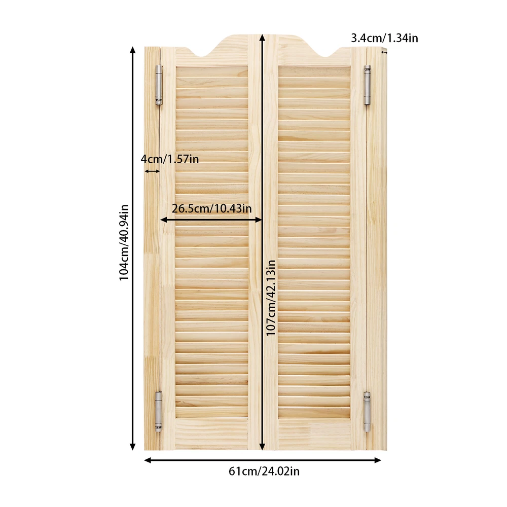 Wood Color Double Half Door Double-hinged Café Door With Hinges Description Entering an extraordinary space, the magic of space is brought by our double-door . Our product combines aesthetics and practical functionality to help you easily plan your room layout. The product uses high-quality materials to provide you with a safe and healthy environment. Rural style design can adapt to various decoration styles and enhance the overall style. Upgrade now and enjoy a high-quality life! Key Features Good Materials: The product is made of high-quality pine wood and aluminum alloy that have been polished for high smoothness and hardness. It has stable performance and can maintain its beauty for a long time. User-friendly Design: The design of the double door can open and close 180 degrees without rebounding, bringing more convenience to use. In addition, the smooth hinges do not make too much noise, providing you with a quiet working or resting environment. Eco-friendly & Safe: The product does not use paint or other coatings, and uses natural pine wood as the main material, which does not release harmful substances, allowing you and your family to enjoy a healthy and safe environment. Practical Function: In addition to decoration, this product can also improve the layout of your home, protect privacy, and block sight, providing you with a comfortable indoor environment. Simple Installation: Simple construction and complete accessories allow you to complete the installation and start using it in a short time. Easy Clean-Up : The surface of the product is smooth and the structure is simple. You can easily use a soft cloth to wipe it clean. Ideal Gift: With a fresh appearance and complete functions, this item can be regarded as a holiday or housewarming gift for parents, friends, and lovers so that they can enjoy a more convenient life. Customer Service: We aim to provide quality products and services. If you have problems, please feel free to contact us. We will reply and solve the problem for you as soon as possible. Details Solid Doorposts: It is convenient for you to install and can also prevent damage to the wall. Reserved Grooves: They can help you quickly determine the hinge position and ensure a stable installation. Application This product can be widely used in corridors, kitchens, clubs, libraries, checkout counters, offices, cafes, shopping malls, bars, reception rooms, clubs, living rooms, balconies, terraces, and other scenarios. Installation Steps for Hinges 1. Hands-on the doorpost to make holes in the wall and install expansion bolts. 2. Fasten the hinges to the doorpost and the door. 3. Insert an Allen key into the adjustment hole to each hinge, and insert the pin. 4. Adjust the bottom hinge in the same way. 5. All hinges must be installed at the same time. Specification Color: Wood Color Style: Countryside Material: Pine Wood, Aluminum Alloy Process: Polishing Indoor/Outdoor Use: Indoor Assembly Required: Yes Mount Type: Wall-Mounted Post Size: 4*3.4*104cm/1.57*1.34*40.94in Each Door Size: 26.5*3.4*107cm/10.43*1.34*42.13in Total Width: 61cm/24.02in Package Size: 108*35*8cm/42.5*13.8*3.1in Gross Weight: 12kg/26.46lbs Net Weight: 11kg/24.25lbs Package Included 1 * Double-door Swing Door 4 * Hinges Other Accessories for Installation Notes Please note that the installation width should be greater than the product width. Please do not expose the product to sunlight or soak it in water for a long time. It is normal that the expansion screw will blow up after the force is applied. Please allow the slight color difference caused by the shooting light and 1-3cm error due to manual measurement, and make sure you do not mind before ordering. Payment Delivery details Terms of sales About us Contact us Payment We accept ebay payment 。 Fees such as import duties, taxes are not included in the item price or shipping costs. These charges are the buyer's responsibility. Delivery details Shipping: 2-9 working days to: USA Terms of sales We maintain high standards of excellence and strive for hundred percent customer satisfaction. Feedback is very important to us. We hope that you contact us immediately before you give neutral or negative feedback, so that we can address your concerns. It is impossible to address issues if we do not know about them! About us Your satis faction is our ultimate goal. We work hard to earn your trust and future business. Our certified technicians have tested each item before shipping. The unit comes with 1 year limited warranty on all manufacturing defects. a) If you receive a defective item, you may return it or ask for a discount. Please contact us within 14 days after you receive the package. b) What you returned must be intact and in its original packaging as re? u. Customer is responsible for shipping costs of the returned item. c) We will cover the cost of shipping back t with the shipping rate indicated in the registration page. We will send you a new unit or refund the full payment you paid. Thank you. Contact us Business Hour Business Hour: Monday To Friday: 8:30 AM to 5:00 PM (Beijing China time) Due to time zones, our reply to your questions may not be immediately. But within above working time, we will reply your email within 24 hours. If it's non-workdays, please kindly be patient and wait till Monday. Please contact us with ebay message. Please feel free to contact us if you have any questions. Monday To Friday: 8:30 AM to 5:00 PM (Beijing China time) Due to time zones, our reply to your questions may not be immediately. But within above working time, we will reply your email within 24 hours. If it's non-workdays, please kindly be patient and wait till Monday. Please contact us with ebay message. Please feel free to contact us if you have any questions. Brand Unbranded Color Wood Color Style Countryside Material Pine Wood, Aluminum Alloy Process Polishing Indoor/Outdoor Use Indoor Assembly Required Yes Mount Type Wall-Mounted Post Size 4*3.4*104cm/1.57