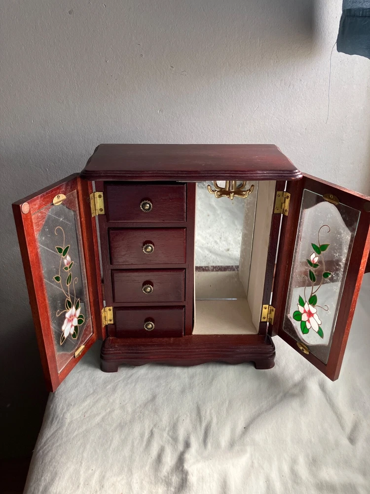 Keep your precious jewelry organized in this elegant wooden jewelry box. With four drawers and a side compartment, this box has ample space to store your necklaces, bracelets, anklets, rings, cufflinks, earrings, and body jewelry. The interior is lined with soft velvet to protect your jewelry from scratches and damage. The box has a classic rectangular shape and measures 11 inches in length, 5.75 inches in width, and 9.75 inches in depth. It is suitable for both men and women and comes in a beautiful brown color. This jewelry box is perfect for keeping your jewelry safe and easy to access.