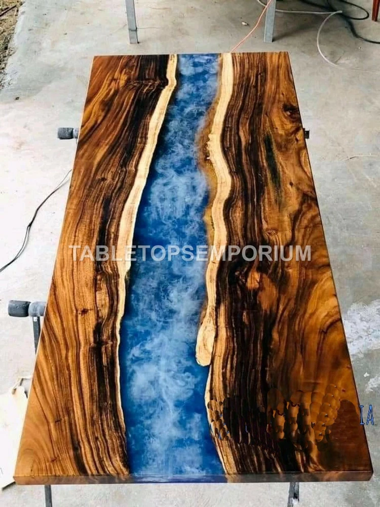 Wooden Acacia Handmade Blue Resin river Dining Custom Table Top Home Décor