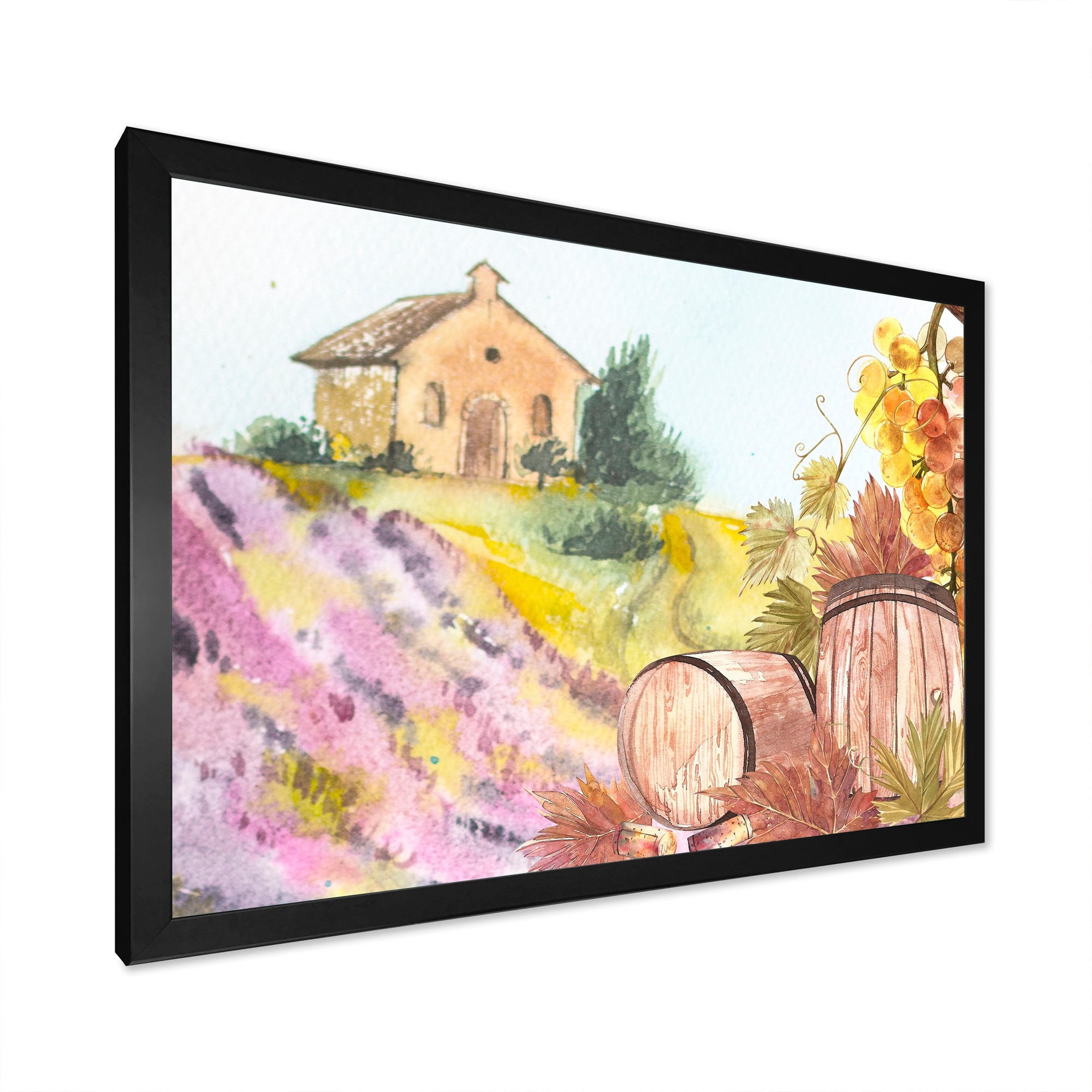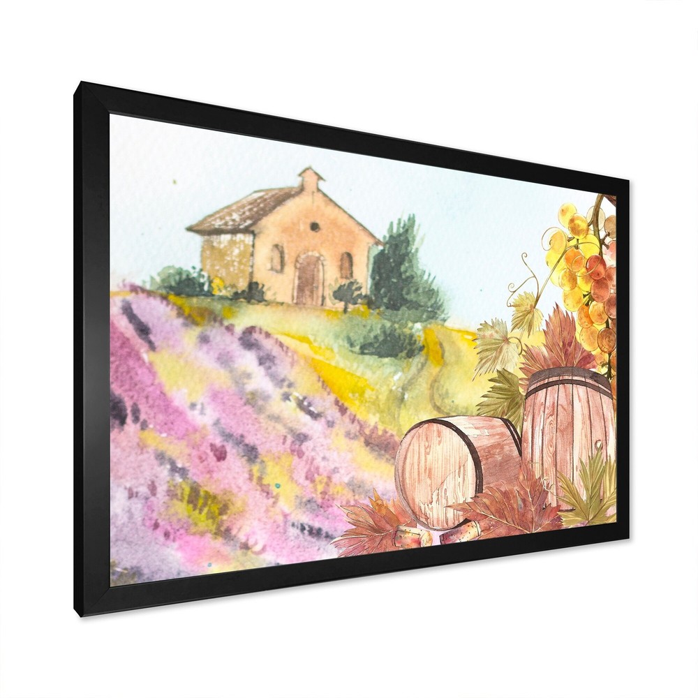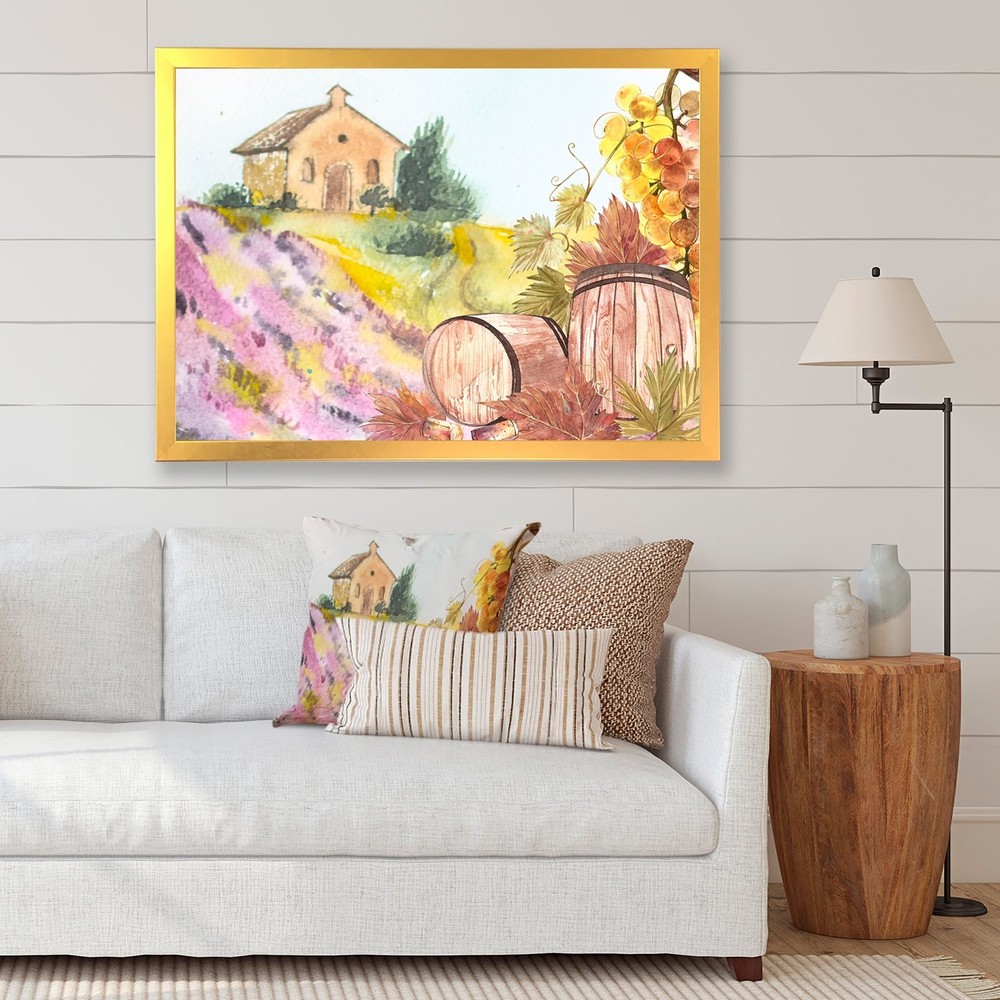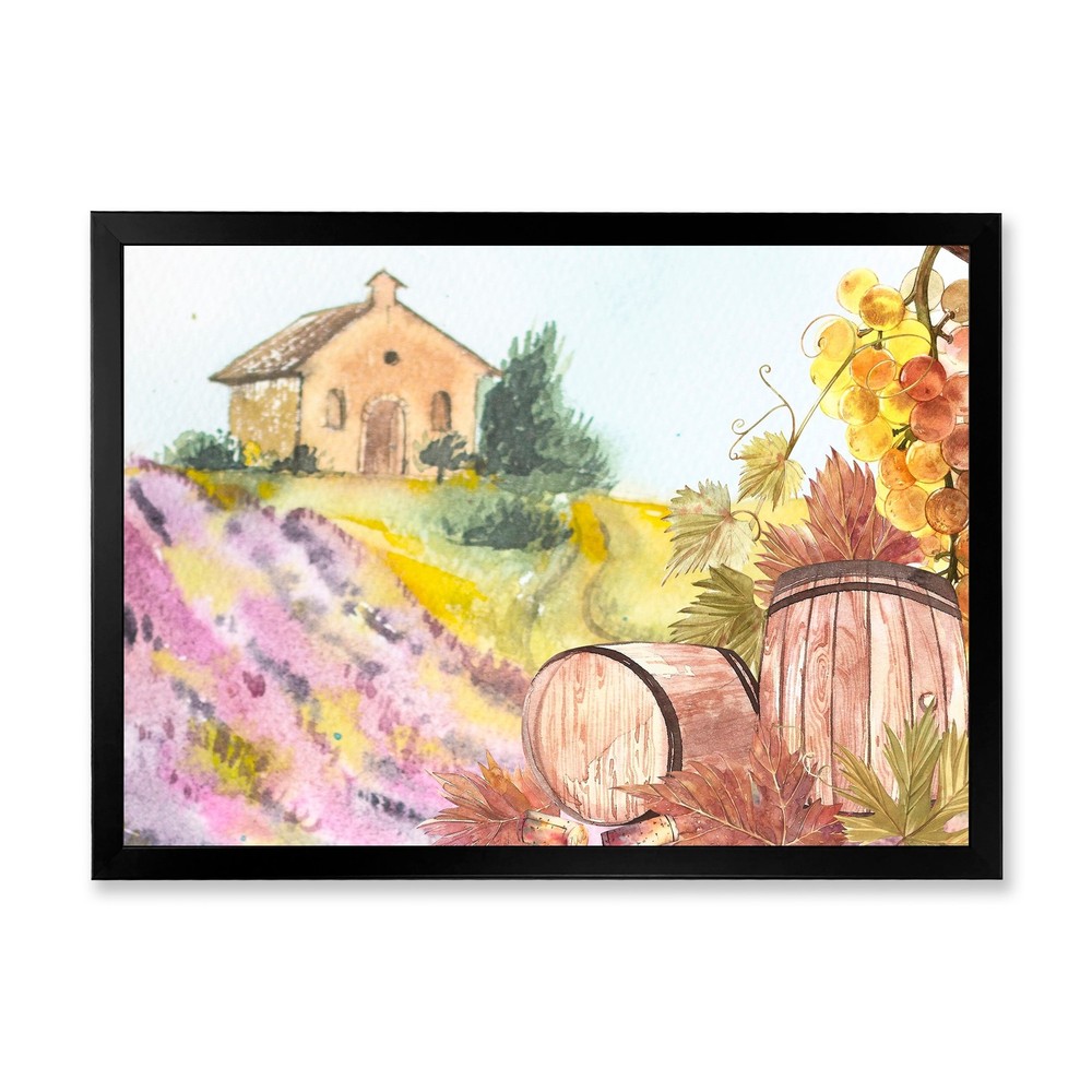 This beautiful Wooden Barrels And Leaves Of Grapes Framed wall Art is printed using the highest quality fade resistant ink on canvas. Every one of our Framed Giclee Prints is printed on premium quality canvas, using the finest quality inks which will not fade over time and then mounted and framed on a 1.5 inch wide frame.This framed art print is available in many different color frames. All of our framed art prints are carefully packaged with corner protectors, fragile labeling, and sturdy boxes to ensure a safe delivery. Every framed art arrives ready to hang on the wall, with the hanging kit included.Features:- Style : Country- Subject : Landscapes- Color : Purple- Premium quality cotton canvas mounted.- Available in several frame colors. - Arrives with instructions and hanging kit Free Shipping Over $49.99* Details Designart "Wooden Barrels And Leaves Of Grapes" Country Framed Art Print Product Description: This beautiful Wooden Barrels And Leaves Of Grapes Framed wall Art is printed using the highest quality fade resistant ink on canvas. Every one of our Framed Giclee Prints is printed on premium quality canvas, using the finest quality inks which will not fade over time and then mounted and framed on a 1.5 inch wide frame. This framed art print is available in many different color frames. All of our framed art prints are carefully packaged with corner protectors, fragile labeling, and sturdy boxes to ensure a safe delivery. Every framed art arrives ready to hang on the wall, with the hanging kit included. Features: - Style Country - Subject Landscapes - Color Purple - Premium quality cotton canvas mounted. - Available in several frame colors. - Arrives with instructions and hanging kit