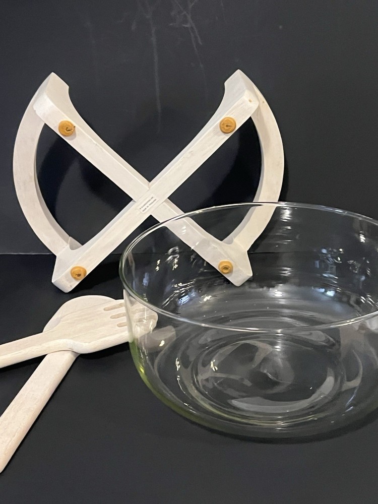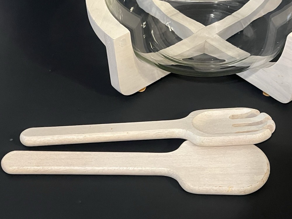 Elevate your dining experience with this exquisite salad bowl, carefully crafted to serve as the centerpiece of your meals. The wooden base adds a touch of rustic charm to your table setting, while the large size of the bowl accommodates generous portions of your favorite salads and appetizers. Included are utensils designed to complement the bowl's aesthetic and functionality. Whether for everyday use or special occasions, this salad bowl set promises to be a versatile addition to your kitchen and dining collection, blending durability with style.