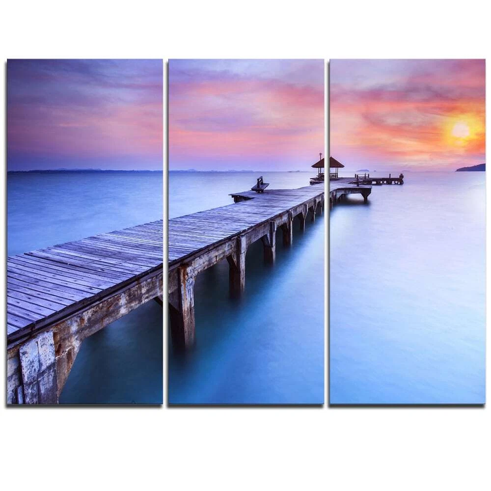 This beautiful Photography Canvas Art is printed using the highest quality fade resistant ink on canvas. Every one of our fine art giclee canvas prints is printed on premium quality cotton canvas, using the finest quality inks which will not fade over time. Each giclee print is stretched tightly over a 1 inch wood sub frame ensuring the canvas is taught and does not buckle. This canvas art print is gallery-wrapped (the design continues on the sides) , giving it a real art gallery feel. All of our canvas prints are carefully packaged with bubble wrap, fragile labeling and sturdy boxes to ensure a safe delivery. Every canvas print arrives ready to hang on the wall, with the hanging kits included Period: ContemporaryOrientation: HorizontalSubject: Photography, Architecture, Matching Set, Free Shipping Over $49.99* Details Wooden Bridge over Blue Waters - Sea Pier Wall Art Canvas Print Product Description: This beautiful Photography Canvas Art is printed using the highest quality fade resistant ink on canvas. Every one of our fine art giclee canvas prints is printed on premium quality cotton canvas, using the finest quality inks which will not fade over time. Each giclee print is stretched tightly over a 1 inch wood sub frame ensuring the canvas is taught and does not buckle. This canvas art print is gallery-wrapped (the design continues on the sides) , giving it a real art gallery feel. All of our canvas prints are carefully packaged with bubble wrap, fragile labeling and sturdy boxes to ensure a safe delivery. Every canvas print arrives ready to hang on the wall, with the hanging kits included PeriodContemporary OrientationHorizontal SubjectPhotography, Architecture, Matching Set, Modern, Decorative, Horizontal TypeCanvas Art, Fine Art, Fine Art Giclee, Print, Wrapped MaterialCanvas, Cotton, Wood StylePhotography, Architecture, Matching Set, Modern, Decorative, Horizontal Number of Pieces3 FramedFramed Exact ColorBlue SizeLarge ColorBlue