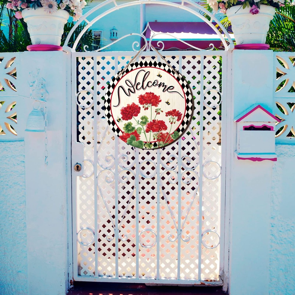 Features: Easy to apply: With provided rope, you can quickly hang the farmhouse welcome sign where you want to display it, such as doors, trees, windows and more, depending on your own decorating preferences, to fill the space with joy and elegance. Creative gifts: You can send our wood welcome signs for outside to your family, friends, colleagues, neighbors and others as presents on housewarming parties or other holidays, which could express your care while strengthening your relationships. Specifications: Main material: wood Color: as pictures shown Size: approx. 11.81 x 11.81 inches/ 30 x 30 cm Package includes: 1 x Geranium welcome sign Notes: Manual measurement, please allow slight errors on size. The color may exist a slight difference due to different screen displays. Package Information: you'll receive a charming welcome sign for front door featuring a delightful geranium theme, designed to radiate warmth and cheer; Ideal for both everyday and festive outdoor decor, it effortlessly enhances your front door, porch, or indoor walls with instant charm Vibrant Appearance: brighten your home with our eye catching geranium spring door hanger! Designed with bold red geraniums, playful yellow bees, lush green leaves, a crisp [Welcome] message, and a timeless white and black buffalo plaid wreath, this piece creates an inviting atmosphere that showcases your hospitality in style Trustworthy Material: crafted from wood, this geranium front door sign boasts expert craftsmanship,smoothly polished, odor free, and built to last; The sturdy, warp resistant surface features vibrant, fade resistant printing that stays vivid season after season, ensuring long lasting beauty Noticeable Size: each welcome door sign for front door measures approx. 11.81 x 11.81 inches/ 30 x 30 cm, an ideal size to make it a good adornment in the home, easy to apply and store, grabbing your guests' attention easily, suitable for plenty of indoor and outdoor places of different kinds of decoration styles Wide Range of Applications: the spring summer porch decor can be applied for a variety of occasions, such as birthday parties, family gatherings, dinners, weddings, holidays and so on, which play decorative roles in your bedroom, office, kitchen, front door, porch, garden, corridor, yard and more places