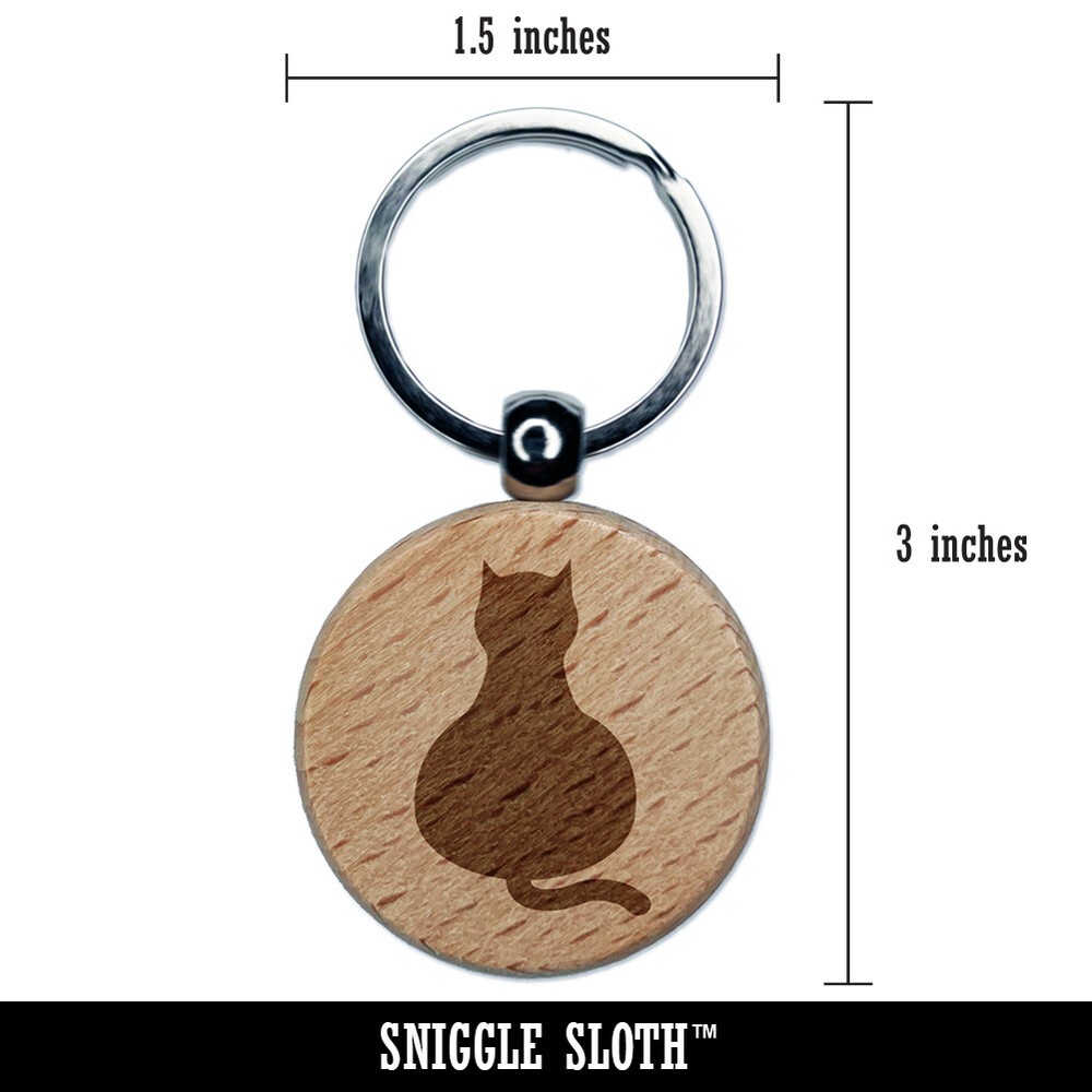 Wooden Cat Keychain with Solid Back and Engraved Design