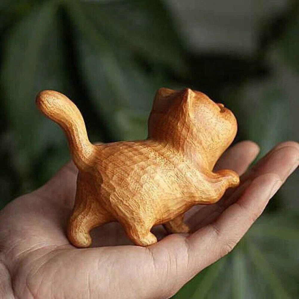 Introducing a unique and adorable addition to your home decor, a tsundere cat! This wooden statue, expertly carved with intricate details, is perfect for animal lovers of all ages. It's great for all occasions such as birthdays, housewarming gifts or just as a cute decoration in your own space. The wood figure portrays a charming cat with a unique personality that will add character to your living space. Children will love this charming cat carving as a gift that they can treasure for a long time. The quality wood used in creating this beautiful sculpture ensures that it will last for years to come. This tsundere cat will be a great conversation starter for all who see it and is sure to become a favorite among your guests. Get yours today and add a touch of whimsy and personality to your home!