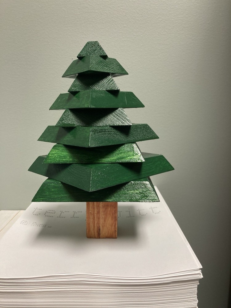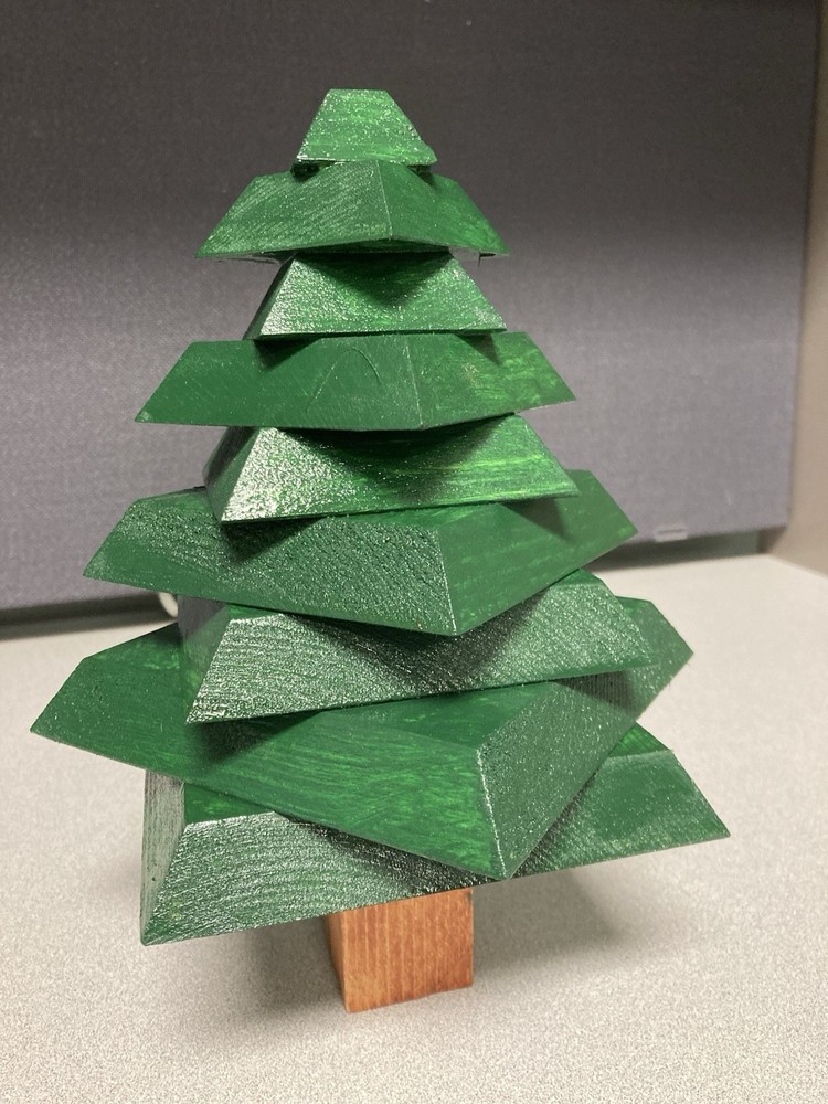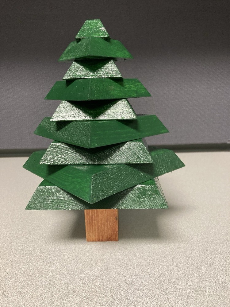 Wooden Christmas tree center piece or for displaying on a mantle. 10in h x 7in w x 7in d