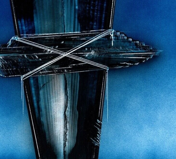 Wooden Cross Original Art in Blue to Dark signed original by Artist Jason Girard