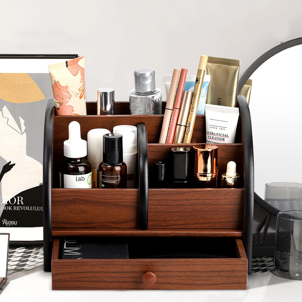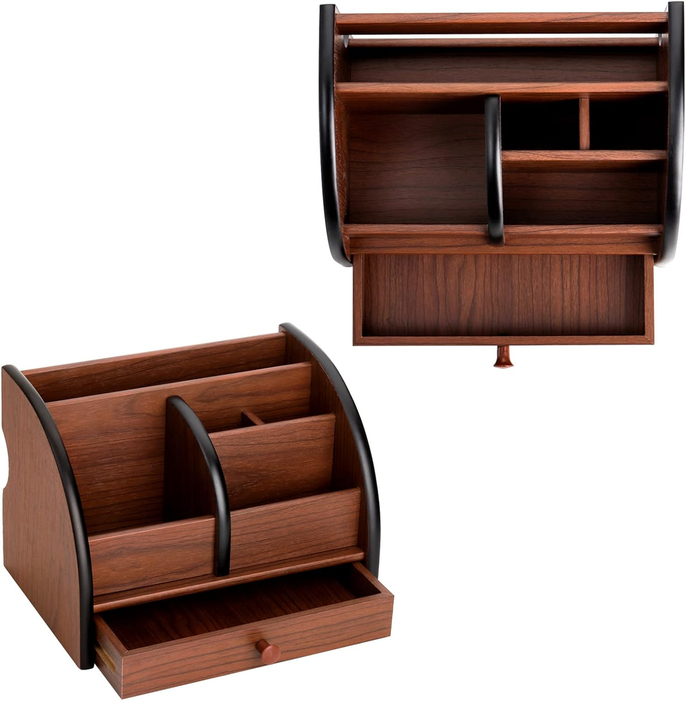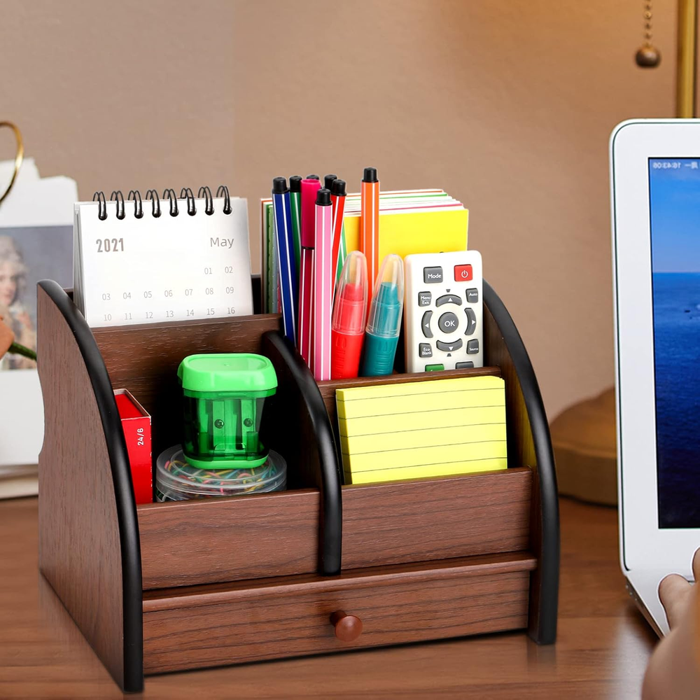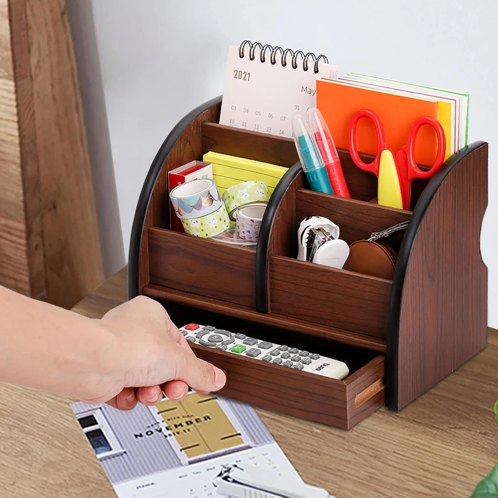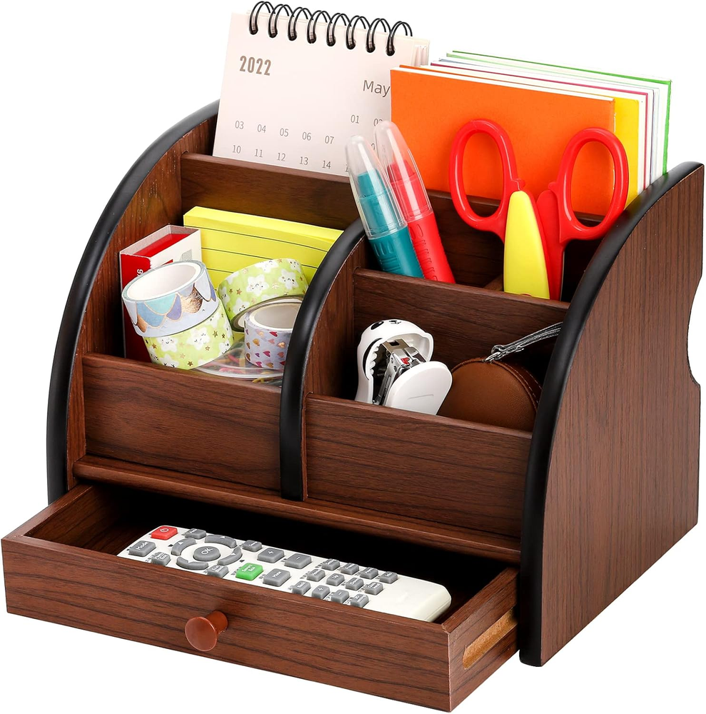 Store New Arrivals Add to Favorite View Feedback Contact Wooden Desk Organizer with Drawer, Remote Control Holder Caddy, Makeup Organizers, Wood Pencil Holder Desktop Supplies and Stationery Rack for Home Office School Tabletop Accessories Storage Description Item model number Fr-WoodDeskOrganizer Part Number Fr-WoodDeskOrganizer Batteries Required? No Number of Items 1 Number of Compartments 5 Unit Count 1.0 Count Color Brown Product Dimensions 5.75"D x 5.5"W x 5.75"H Material Wood Country of Origin China Mounting Type Tabletop Mount Item Weight 0.89 Kilograms Item Weight 1.96 pounds Shape Rectangular Batteries Included? No Package Type Flat Free Package (FFP) Special Features Multifunctional Special Feature Multifunctional Specific Uses For Product Cosmetics Divided Compartments for Efficient Storage: The desk storage organizer is composed of 5 individual compartments of various sizes and a small drawer. Each compartment is firmly connected. Multi-slots design allows you to sort different types of desk supplies and stationery in categories and keep them well organized and easily accessible. Divided Compartments for Efficient Storage: The desk storage organizer is composed of 5 individual compartments of various sizes and a small drawer. Each compartment is firmly connected. Multi-slots design allows you to sort different types of desk supplies and stationery in categories and keep them well organized and easily accessible. Countless Storage Options: It is a multifunctional home & office storage organizer that can be used as a pencil holder, makeup organizer, remote control holder, etc. Great for storing various small items, such as remote controls, notebooks, pens, pencils, staplers, paper clips, scissors, calculators, glue, business cards, mobile phones and other stationery and daily necessities. Classic Wooden Organizer: This wood storage drawer organizer is made of advanced density board with beautiful wood grain surface that goes well with your furniture and matches various styles of home decoration. Suitable for Many Occasions: A versatile desk organizer holder for storing stationery, cosmetics, makeup accessories, office supplies. Can be put on any desktop in bedroom, living room, office, school and more, save the desktop space and keep the desk tidy. Product Description Product Details: Specifications: Size: 8-1/8 x 5-1/2 x 5-3/4 inch (20.6 x 14.2 x 14.6cm) Features: Made of high quality MDF material that is stable, strong and durable. Classic wood grain surface will go well with your furniture and match various styles of home decoration. Stay Organized: With 5 individual compartments, greatly helps to organize clutters and saves space on your tabletop. Divided compartments are perfect for holding different types of accessories. Widely Applicable The design of multi-slots with various sizes allows you to sort different types of desk supplies and stationery in categories and keep them well organized and easy to find. This professional organizer works well for a variety of uses, can be used as a pencil holder, makeup organizer, remote control holder, etc. Perfect for storing various small items, such as remote controls, notebooks, pens, pencils, staplers, paper clips, scissors, calculators, glue, business cards, mobile phones and other stationery and daily necessities. Ideal for used as a cosmetic holder to save space on your vanity tabletop. Keeping your lipsticks, powder, blushes, highlighters, eye shadow and other makeup accessories clean and tidy all the time. Multi-functional Organizer ABOUT US We offer the best prices around on high quality products. Our E-store includes media such as books, movies, music and games while offering electronics, toys, sporting apparel, clothing, tools, general home, garden items and more. SHIPPING We are always working hard to ensure your package arrives as soon as possible. Please understand that some factors like weather, high postal traffic, and the performance of shipping companies are outside of our control. We offer free shipping to the lower 48 states and ship within 2 business days of payment, usually sooner. We do not accept P.O. Boxes. Please provide a physical address. For shipping outside of the continental USA, we only use eBay's Global Shipping Program.The item is shipped to KY and then sent to the rest of the world. International customers are responsible for all duties and taxes. Continue to check out in order to calculate costs for shipping the item to your country. Messages regarding eBay's Global Shipping Program MUST be directed at eBay EXCLUSIVELY. RETURNS We offer a 30-Day Return Policy on items which you are not completely satisfied with. You have the option for a full-refund or an exchange of the item. No returns are available on items shipped outside of the USA. PAYMENT We accept PayPal. CONTACT US This page content is yet to come Please ad us to your favorite seller and visit again later Thank You CUSTOMER SATISFACTION We try our very best to make sure every customer is completely satisfied. If there's a problem, message us! We're happy to help. WE ACCEPT Copyright © 2021 AutoDS. | All Rights Reserved