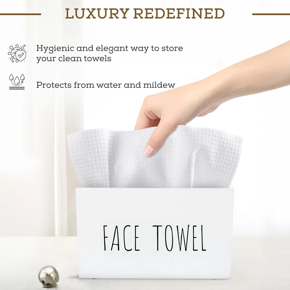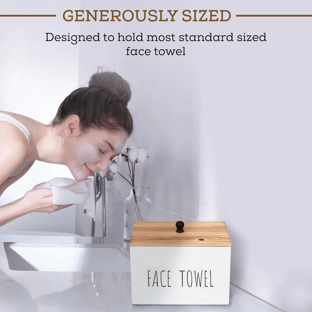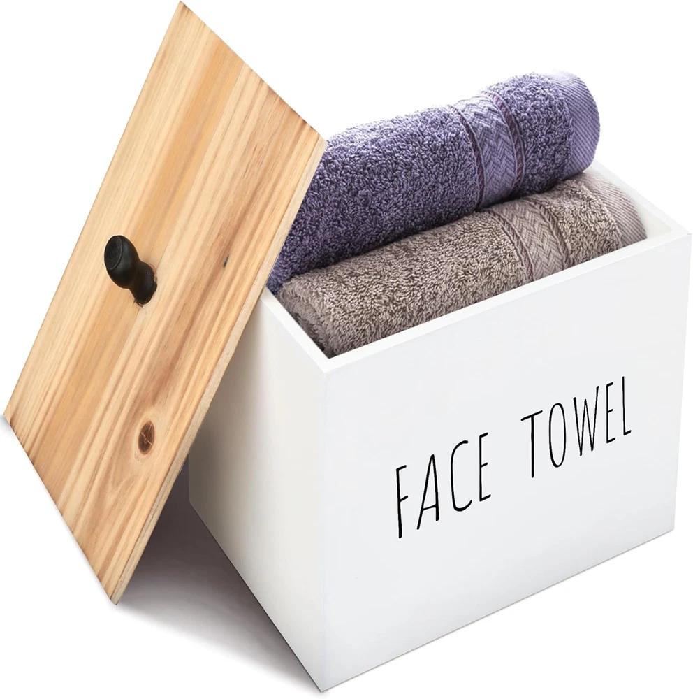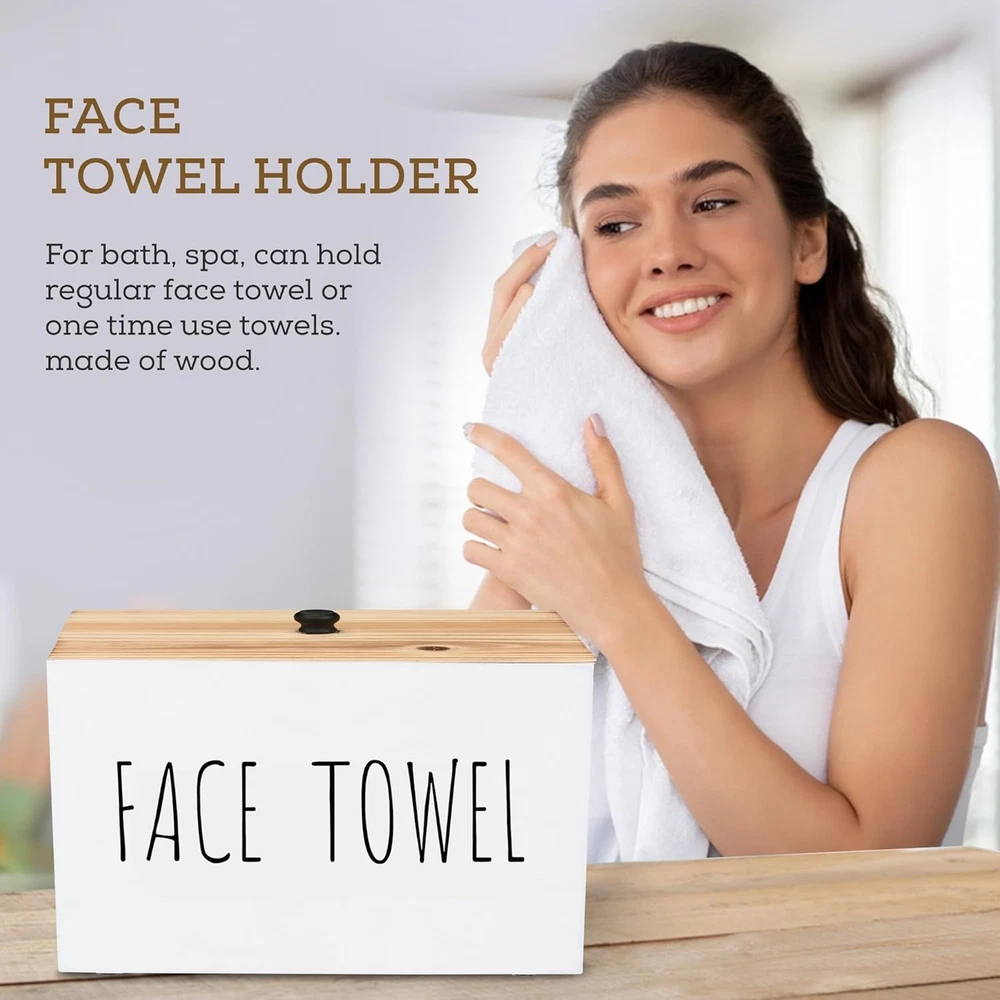 ORGANIZE IN STYLE: Keep your face towels neatly organized and easily accessible with this sleek wooden holder. Use this simple but functional face towel holder to protect them from dust and humidity. MULTIPURPOSE CHOICE: The versatile design of the disposable face towel holder box provides a great storage solution for your essentials. It can also be used to store your makeup-remover swabs, cotton pads, washcloths, hand towels, toiletries, etc NATURAL MATERIALS : Made from high quality wood, this holder adds a touch of warmth and natural beauty to any bathroom. This exquisite wood box holder for clean skin towels is what everyone wants. It keeps your face towels dry and clean, protecting them especially from water and mildew. SPACE SAVING DESIGN: Its compact size makes it ideal for bathrooms of all sizes, providing convenient storage without taking up valuable counter space. DURABLE CONSTRUCTION: Designed to withstand daily use, our wooden towel holder is built to last, ensuring years of reliable service. Upgrade your bathroom experience with our Wooden Face Towel Holder and add a touch of elegance to your daily routine. Product Description Elevate your bathroom decor with our exquisite wooden face towel holder, crafted from high-quality wood for durability and style. Elevate your bathroom decor with our handcrafted wood face towel holder. Made from high-quality wood, this towel holder provides a stylish and friendly solution for hanging and drying your face towels. With its natural finish, it adds a touch of warmth and sophistication to any bathroom. Durable Construction. Constructed from high-quality wood. Durable Construction. Constructed from high-quality wood, this holder ensures durability and longevity, promising to keep your towels neatly organized for years to come while adding a touch of warmth and sophistication to your decor. Elegant Wood Finish Crafted from premium quality wood, this face towel box container holder boasts a luxurious finish that adds a touch of sophistication to any bathroom decor. Sturdy Construction Constructed from high-quality, durable wood, our towel holder ensures longevity and reliability. The natural grain patterns and rich tones of the wood add warmth and character to any bathroom décor. Rustic Charm: Elevate your bathroom decor with this wooden face towel holder. Transform your bathroom into a serene oasis of relaxation with our Wooden Face Towel Holder. Add a touch of natural beauty and functionality to your daily routine. Order yours today and experience the perfect blend of style and convenience! Thoughtful Gift Idea Whether for housewarmings, weddings, or any special occasion, this wooden face towel holder container with lid makes a thoughtful and practical gift that will be appreciated by friends and family alike.