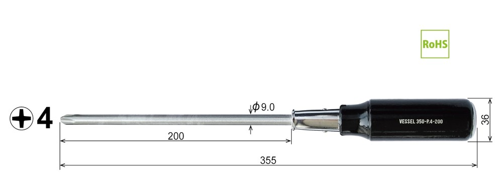 VESSEL Wooden Handle Phillips Screwdriver 5.5×75mm 350mm Shaft