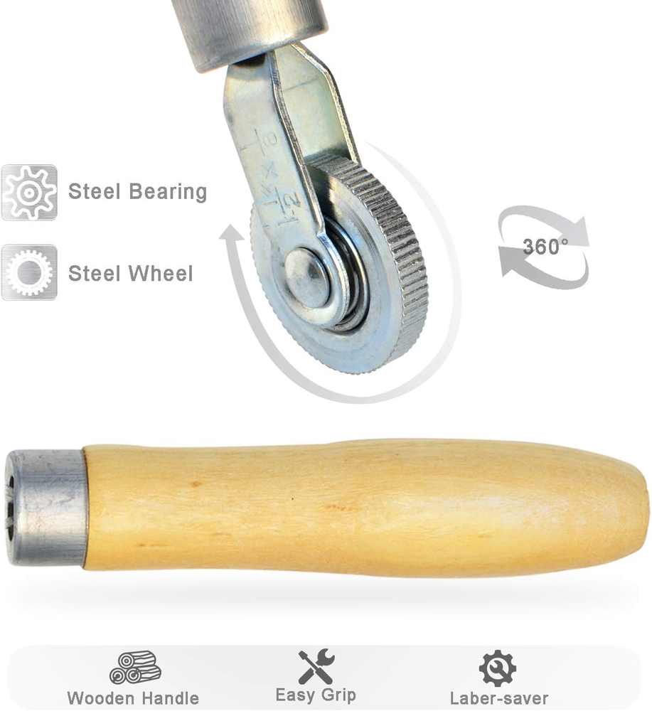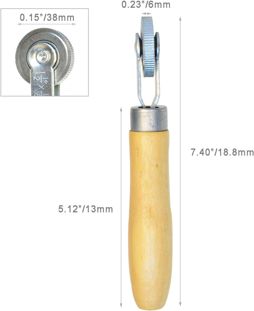 Used for rolling tire and tube patches adhere fully during repairs, ideal tire repair tool for cars, motorcycles and bicycles DEFINED TEETH - Deep-cut and clearly defined gear-like teeth provide more penetrating pressure to remove trapped air Wooden material handle makes it durable , portable and comfortable to use Wheel Size : 38 x 6mm/1.5 x 0.36" (D*T) Handle Size : 115 x 28mm / 4.5 x 1.18(L*D) The only thing worse than having a flat tire is the patch you just applied didn't hold because there was an air bubble under the patch that prevented it from fully sealing This ITEQ Tire Patch Roller helps prevent this by allowing you to provide penetrating pressure over the patch as it vulcanizes and cures to force out trapped air bubbles that could compromise your patching job A few passes with the 6mm diameter wheel and firm pressure lets the gear-like teeth press into the patch and force out air while also more securely adhering the patch Package 1 x ITEQ 6mm Tire Patch Roller