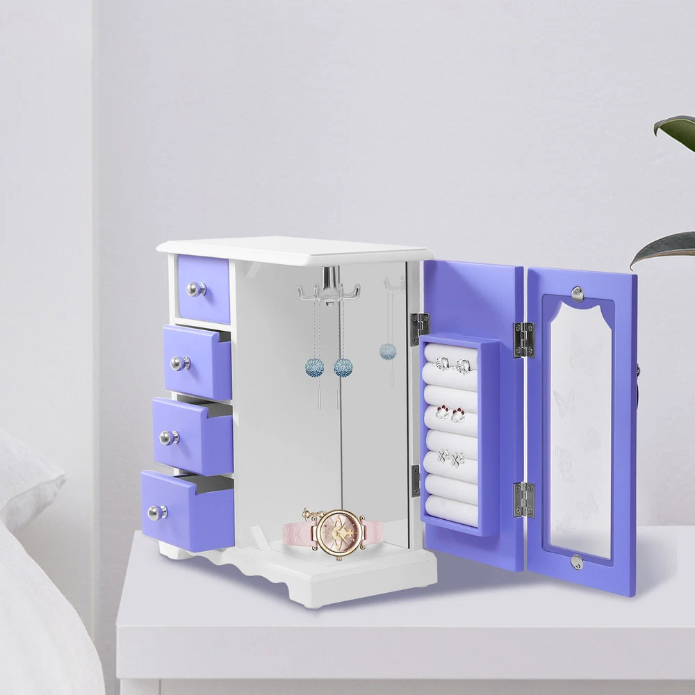 Specification Style: Simple, Modern Material: Mdf, Glass Color: Purple Process: Odorless Paint Number of Drawers: 4 Product Size: 23*13*28.5cm/9*5*11.2in Package Size: 29*18*34cm/11.42*7.09*13.38in Net Weight: 2kg/4.41lbs Gross Weight: 2.4kg/5.29lbs Package Included 1* Jewelry Box Wooden Jewelry Box Butterfly Jewelry Storage CabinetOrganizer & 4 Drawers Mirror Welcom to yybshop06 Description This Jewelry Box Will Keep Your Dresser Organized and save Time Searching for Jewelry. with Its Creative Design and Beautiful Butterfly Pattern, It Will Add a Touch of Character to Your Home. Specification Style: Simple, Modern Material: Mdf, Glass Color: Purple Process: Odorless Paint Number of Drawers: 4 Product Size: 23*13*28.5cm/9*5*11.2in Package Size: 29*18*34cm/11.42*7.09*13.38in Net Weight: 2kg/4.41lbs Gross Weight: 2.4kg/5.29lbs Package Included 1* Jewelry Box Key Features Excellent Material: This Jewelry Box Is Made of High-quality Mdf, Which Is Natural, Renewable, Anti-wear, Rust-resistant, and Has a Long Service Life. Beautiful Appearance : the Creative Look, Butterfly Pattern, Double Door Design, and Purple Color of the Jewelry Box Make It Beautiful and Suitable in Any Setting. Dust-proof and Highly Transparent Glass: This Jewelry Box Has Highly Transparent Glass. the Glass Is Not Only Dust-proof but Also Provides an Unobstructed View of the Interior Which Can Keep the Inside Clean and Help You Quickly Find the Jewelry You Want. 360° Rotatable Hook: This Jewelry Box Has a 360° Rotatable Hook, Which Can Be Freely Rotated for Easy Access to Necklaces and Bracelets. Large Capacity Storage: This Jewelry Box Has a Ring and Earring Area, a Hanging Area Behind the Door, and 4 Drawers. Earrings, Necklaces, Bracelets, Rings, Watches, Lipsticks, Etc. Can All Be Put into This One Organizer, Which Can Meet Your Various Needs and Make Your Dressing Table Tidier and Neater. Double Door Design: This Jewelry Box Is a Double Door Design, There Is a Large Opening, Which Is Easy for You to Take Earrings, Necklaces, Bracelets, and Rings. Sorted Storage: This Jewelry Box Has 4 Drawers That Allow You to Sort Your Items to Make Your Room Tidier and Easy to Find the Things You Need. Space Saving: with Its Footprint of 9*5in, This Jewelry Box Takes up a Small Area. Since It Makes Use of Vertical Space, Not Only Will It Not Waste Your Dressing Table, but It Will Also Provide You with More Storage Space. Built-in Mirror : This Jewelry Box Case Has a Built-in Mirror. You Only Need to Open the Box to Use It, Which Is Very Convenient for You to Wear Jewelry and Does Not Take up Much Space. Earrings and Rings Storage Area: This Storage Area Is Equipped with Soft Velvet to Protect the Jewelry from Wear and Tear Which Is Very Thoughtful. Wonderful Gift: Our Jewelry Box Is an Ideal Gift for Your Wife, Daughter, Girlfriend, or Make-up Lovers on Birthdays, Anniversaries, and Christmas, Because It Is Not Only Useful but Also a Great Decoration. Easy to Clean: Because of Its Smooth Surface, You Only Need to Wipe It with a Cloth, and Then It Will Shine like a Brand-new One. Customer Service: We Aim to Provide Quality Products and Services. If You Have Any Problems, Please Feel Free to Contact Us. We Will Reply and Solve the Problem for You As Soon As Possible. Details Anti-slip Footbeds : This Jewelry Box Has Four Anti-slip Footbeds on the Bottom, Which Allows You to Keep It Stable While Using It for Your Convenience. 4 Drawers: the 4 Drawers of This Jewelry Box Not Only Provide More Storage Space but Also Protect Privacy. Silver Handles: Each Drawer Has a Silver Handle That Is Round and Smooth for Easy Access and Embellishes the Jewelry Box. Every Time You Open the Box Is a Ritual Enjoyment. Odorless Paint: This Jewelry Box Adopts Odorless Paint Which Is Odorless, Does Not Fade, and Has Bright Colors. Plating Hardware : the Plating Hardware of This Jewelry Box Will Not Fade or Rust Which Increases the Service Life. Application It Is Suitable for the Bathroom, Bedroom, Dressing Table, and Make-up Store to Place Necklaces, Rings, Earrings, Bracelets, and Other Make-up Items, Making Your Dressing Table Neater and Tidier. Notes Please Allow the Slight Color Difference Caused by the Shooting Light and 1-3 Cm Error Due to Manual Measurement, and Make Sure You Do Not Mind Before Ordering. Payment Delivery details Terms of sales About us Contact us Payment We accept ebay payment 。 Fees such as import duties, taxes are not included in the item price or shipping costs. These charges are the buyer's responsibility. Delivery details Shipping: 2-9 working days to: USA Terms of sales We maintain high standards of excellence and strive for hundred percent customer satisfaction. Feedback is very important to us. We hope that you contact us immediately before you give neutral or negative feedback, so that we can address your concerns. It is impossible to address issues if we do not know about them! About us Your satis faction is our ultimate goal. We work hard to earn your trust and future business. Our certified technicians have tested each item before shipping. The unit comes with 1 year limited warranty on all manufacturing defects. a) If you receive a defective item, you may return it or ask for a discount. Please contact us within 14 days after you receive the package. b) What you returned must be intact and in its original packaging as re? u. Customer is responsible for shipping costs of the returned item. c) We will cover the cost of shipping back t with the shipping rate indicated in the registration page. We will send you a new unit or refund the full payment you paid. Thank you. Contact us Business Hour Business Hour: Monday To Friday: 8:30 AM to 5:00 PM (Beijing China time) Due to time zones, our reply to your questions may not be immediately. But within above working time, we will reply your email within 24 hours. If it's non-workdays, please kindly be patient and wait till Monday. Please contact us with ebay message. Please 