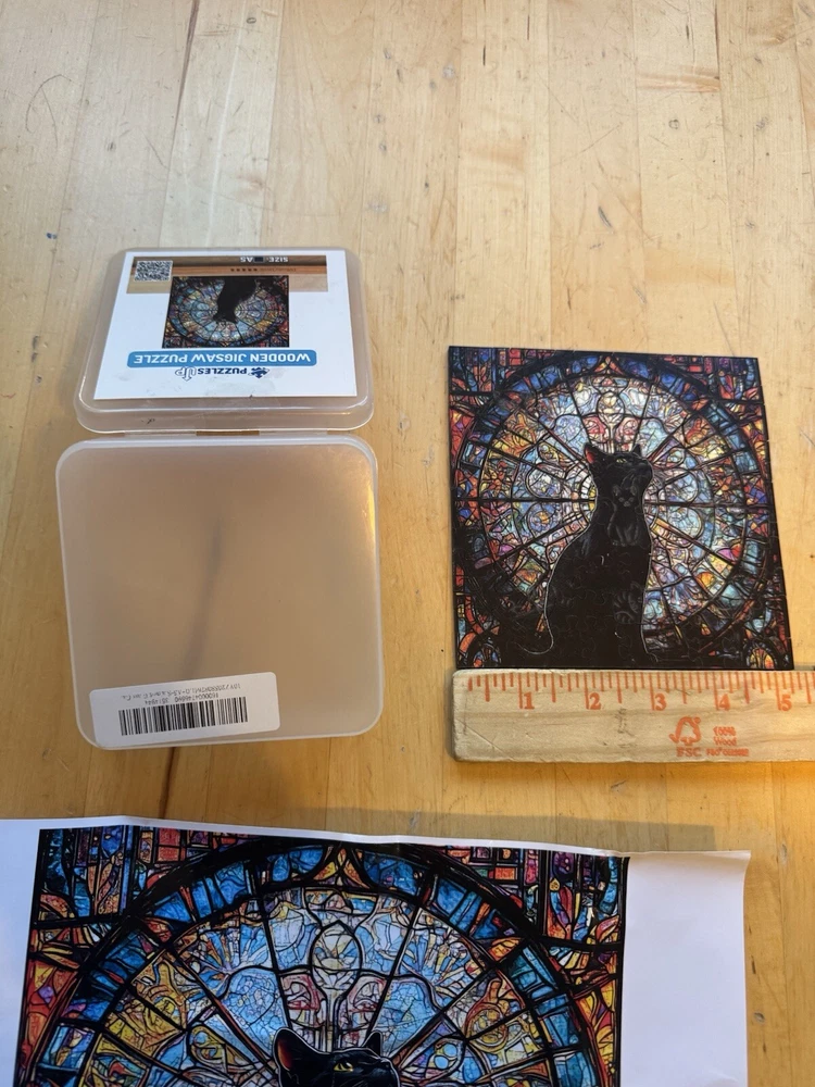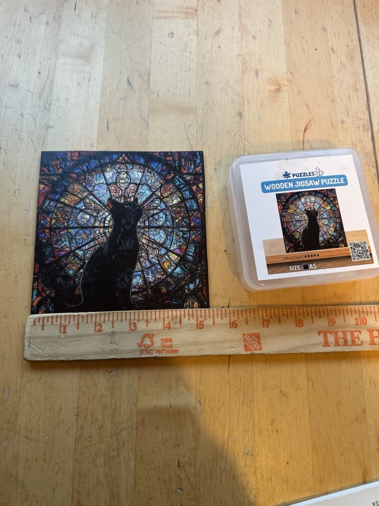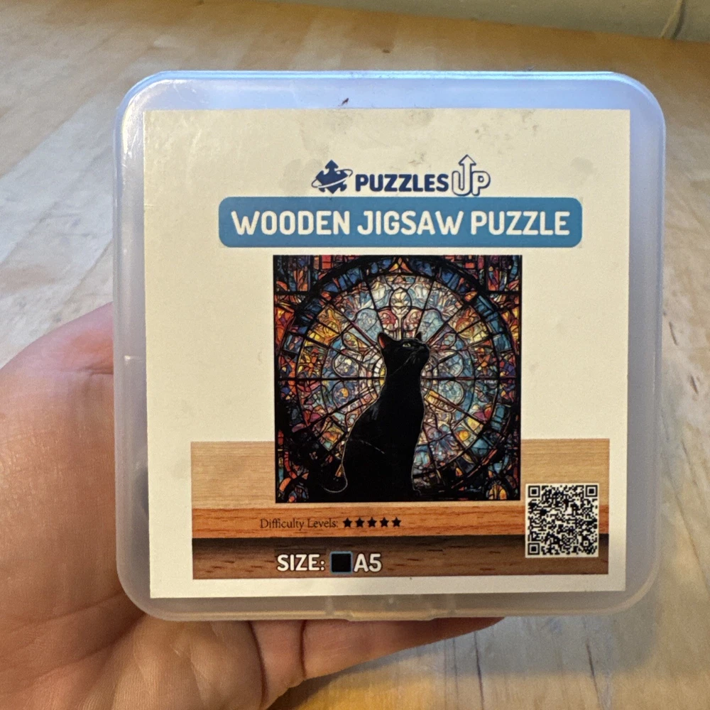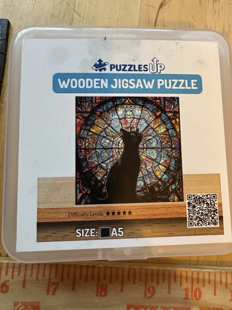Wooden Jigsaw Puzzle Puzzles Up Cat In Stained Glass. Fun puzzle!