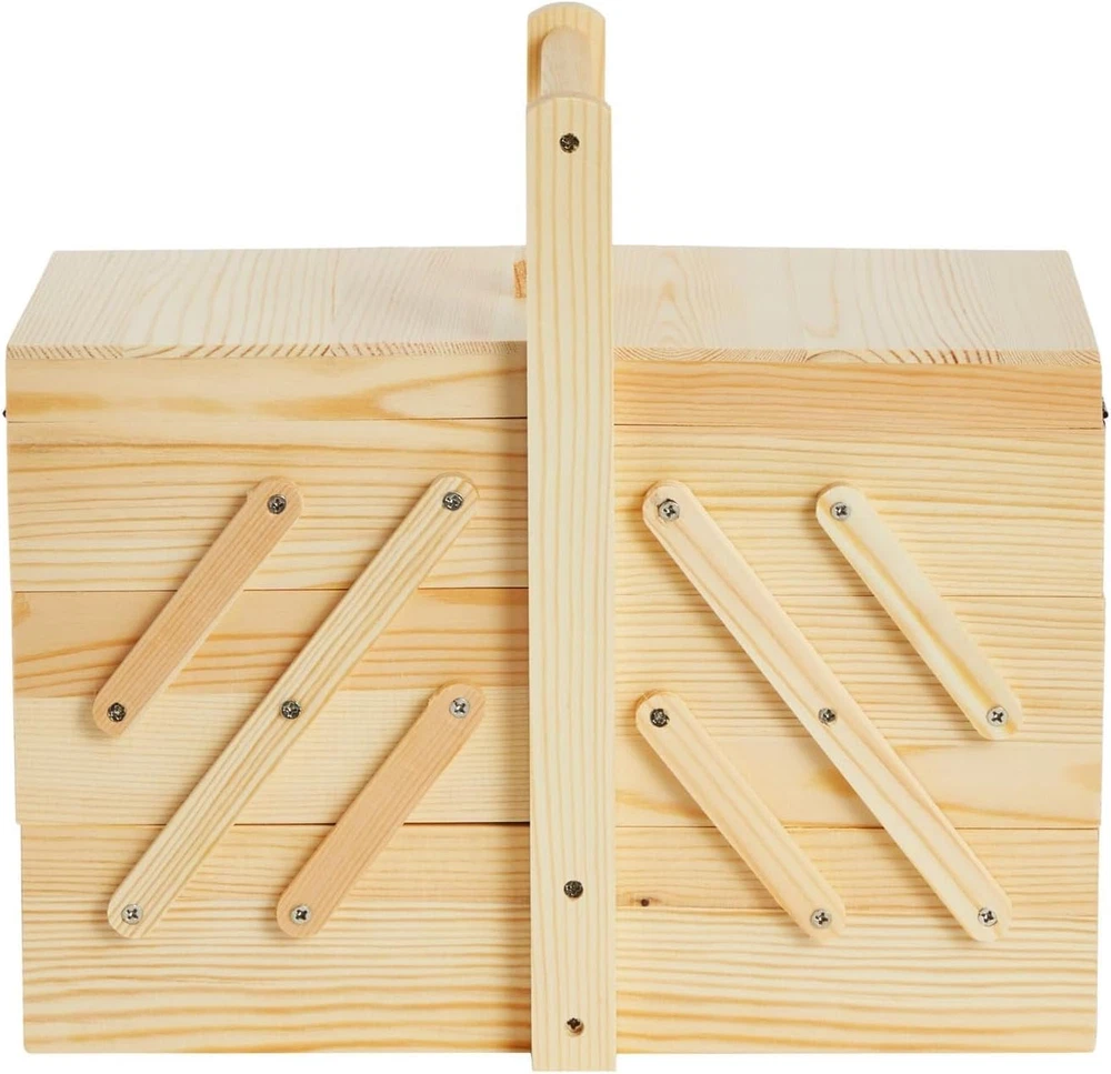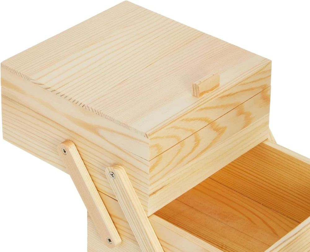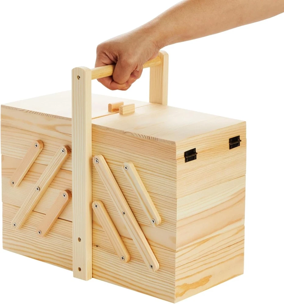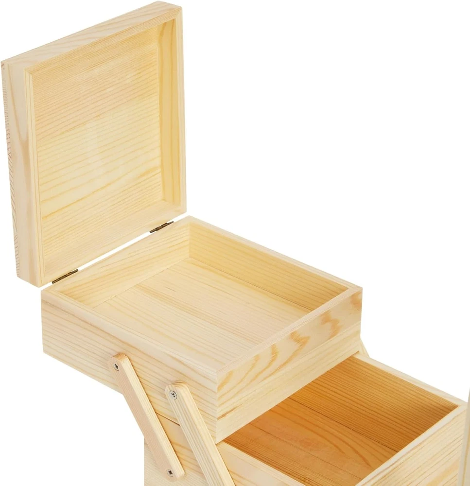 Shape: Rectangular Number of Compartments: 3 Item Package Quantity: 1 Item Weight: 1 pounds Batteries Included?: No Number Of Pieces: 1 Item model number: LJ-ZECGY-072319-05-1 Water Resistance Level: Not Water Resistant Number of Items: 1 Type: Does not apply Material: Wood Size: 12.6 x 5.9 x 8.3 inches (excluded the handle) Pattern: Solid Color: Wooden Product Dimensions: 12.6"L x 8.3"W x 5.9"H Global Trade Identification Number: 00194425109483 Unit Count: 1 Count Brand: Does not apply Special Feature: Portable, Stackable gtin13: 313053116179 Style: Classic Batteries Required?: No Part Number: ZECGY Recommended Uses For Product: For Arts & Crafts UPC: 313053116179 Handle Material: Wood Special Features: Portable, Stackable Opening Mechanism: Hinge