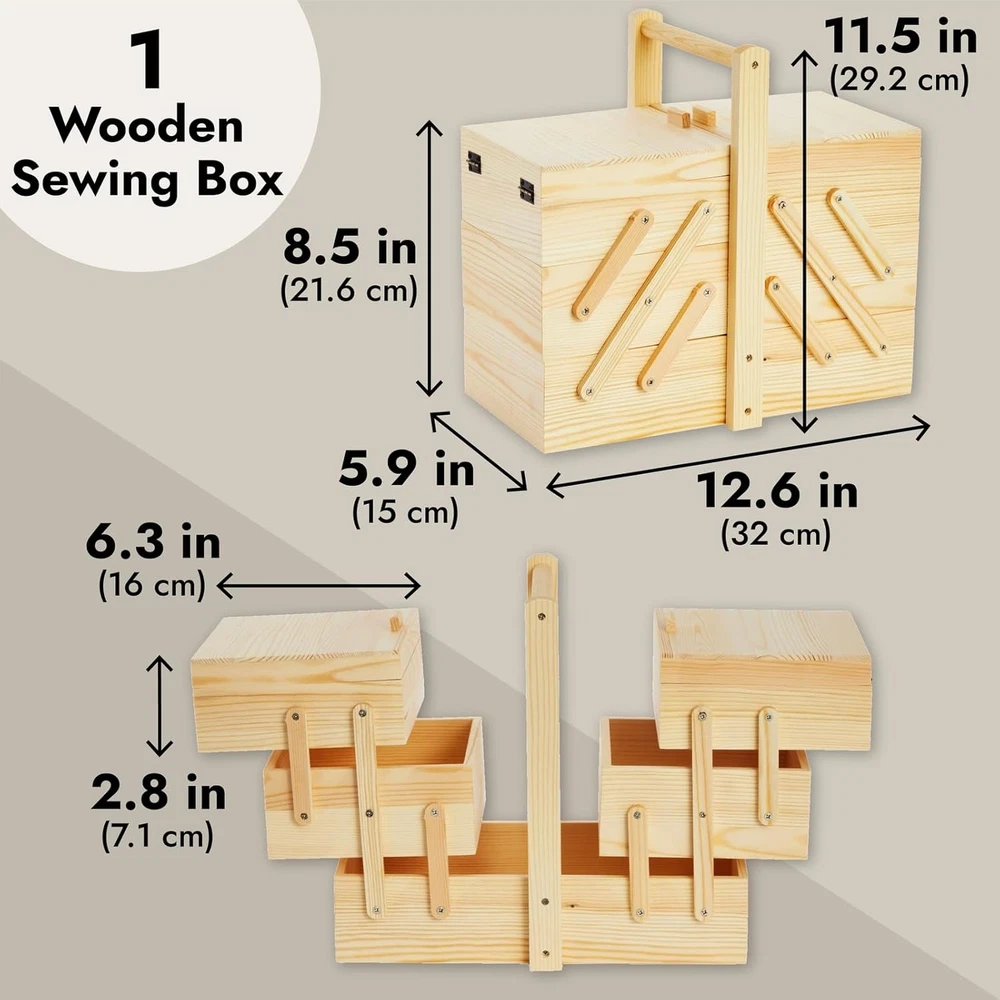 Wooden Sewing Box Organizer for Sewing Supplies with 3 Tier Drawers for Craft To