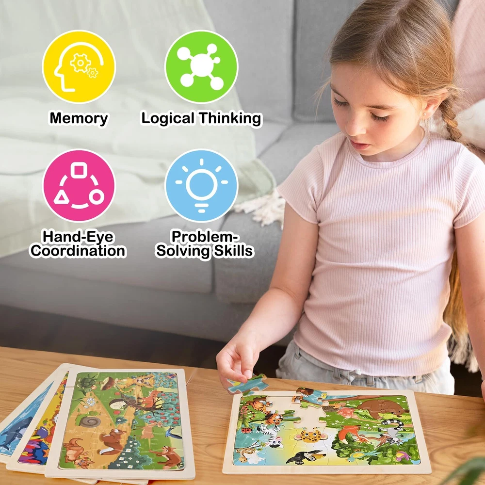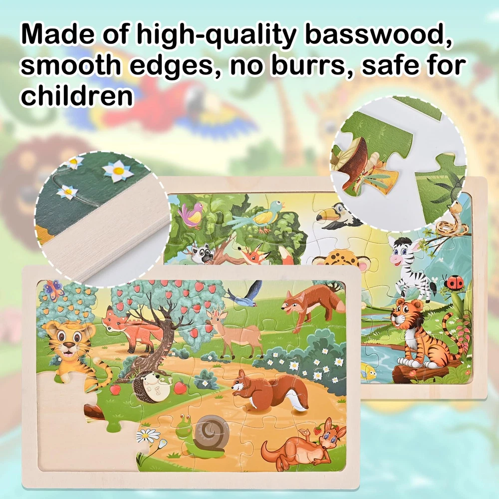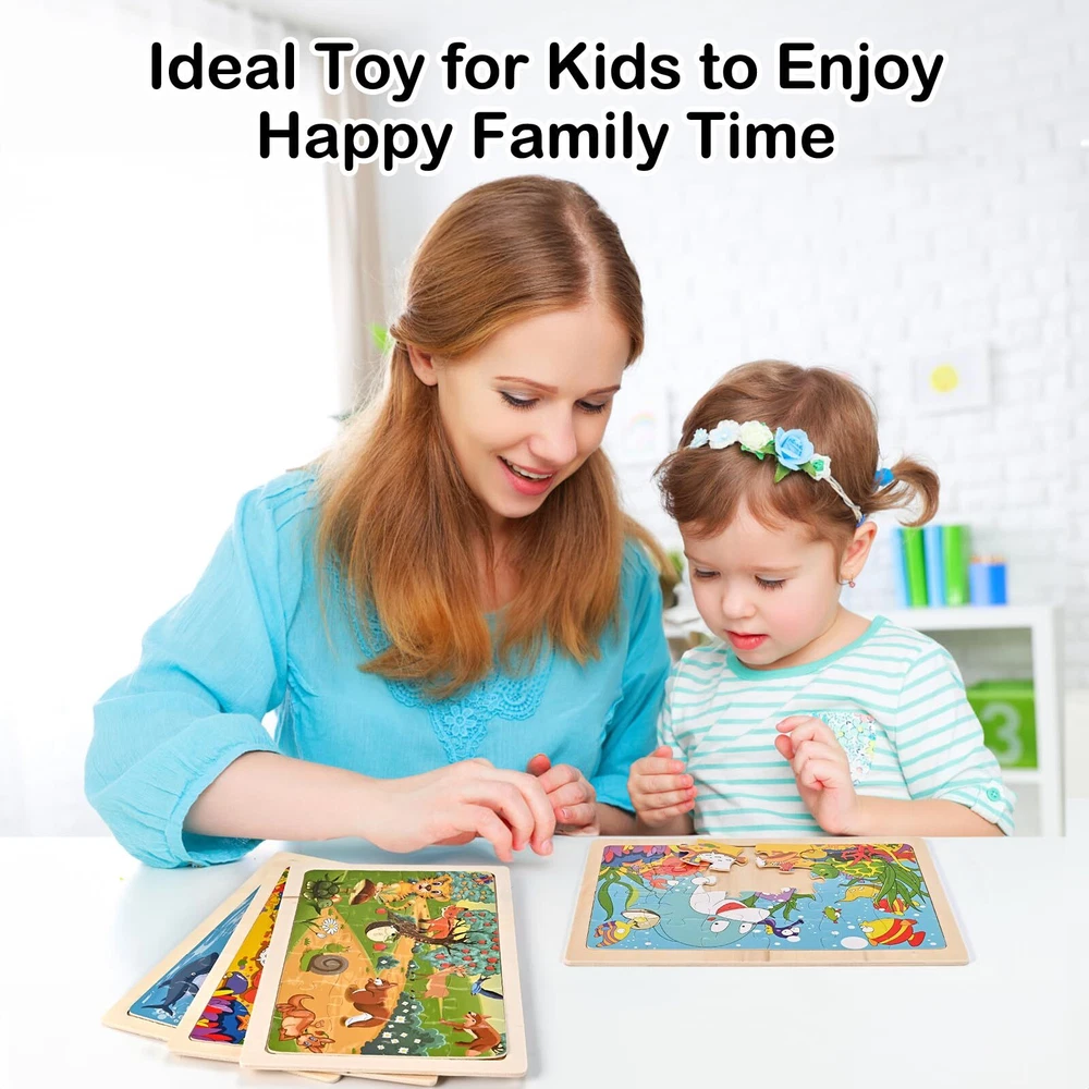 Wooderma Wooden Puzzles for Kids Ages 3 4 5, 4 Packs 24 Pcs, Sea and Animal Puzzles for Toddlers, Toddlers Jigsaw Puzzles, Preschool Educational Learning Toys for Boys and Girls Improve logical thinking and problem solving: toddler puzzles require children to analyze the relationship between the pieces and gradually understand the concept of “part” and “whole”, thus developing logical thinking and problem solving skills. Hands-on skills: Wood jigsaw puzzles for kids require children to work with their hands, which can effectively exercise their finger dexterity and hand muscle development. Observational skills: Children must carefully observe the characteristics and position of each piece when searching for the right puzzle piece, which helps to improve their observational skills and concentration. Social interaction: If playing with other children, kids puzzles toy can also promote communication, cooperation and sharing, and learn the initial experience of teamwork. Wooden puzzles for toddlers are a fun and educational activity that has a comprehensive and positive impact on children's physical and mental development. Wooden Puzzle Set contains: 4 Pieces Puzzles, each puzzle contains 24 pieces of durable and colorful wooden puzzles, which can be assembled and put together smoothly, this product has 4 kinds of attractive themes: river animals *1, orchard animals *1, underwater world *1, underwater animals *1 Toddler Puzzles: Wooden puzzles use precision cutting technology and quality wood materials. Each piece is carefully polished to ensure the safety of your child's hands. Preschool educational learning toys are safe, durable and made for children, and can be reused by children aged 3-8 years old Improve Ability:This wooden jigsaw puzzlesis designed to help children train their imagination and improve their hand-eye coordination. They provide valuable practice in problem solving and spatial reasoning skills as children engage in completing the puzzle Flexible Use: Wood jigsaw puzzles have removable paper illustrations underneath to guide where the puzzle pieces go, which children can use as a reference. In addition, each puzzle comes with a special wooden frame to ensure that the puzzle is held firmly in place during play Ideal Present: Our wooden puzzles for toddlers is a great gift choice for birthdays, Christmas, New Year, Thanksgiving, Easter and other holidays. These puzzles contain 24 wooden pieces and are perfect for boys and girls ages 3 to 8 Shipping from the USA All of our products are shipped from the USA, ensuring quick delivery to your destination. Payment We offer the following payment methods: PayPal, credit card, bank transfer, and eBay's secure payment system. Free Shipping & Free Returns Shipping within the USA is FREE. Additionally, any return is absolutely free for you. Risk-Free Purchase You have the option to return an item within 30 days without any justification. We cover the return shipping costs! Fast Shipping We ship immediately upon receipt of payment. Generally, the package is delivered within 2-3 days in the USA. If it takes longer, we will contact you. Quality and Costs Made in Europe, USA, China No customs fees or additional charges Total satisfaction guarantee Invoice with declared VAT available upon request in .pdf format Feedback Your feedback is very important to us. After you pay for your purchase, you will automatically receive positive feedback from us.