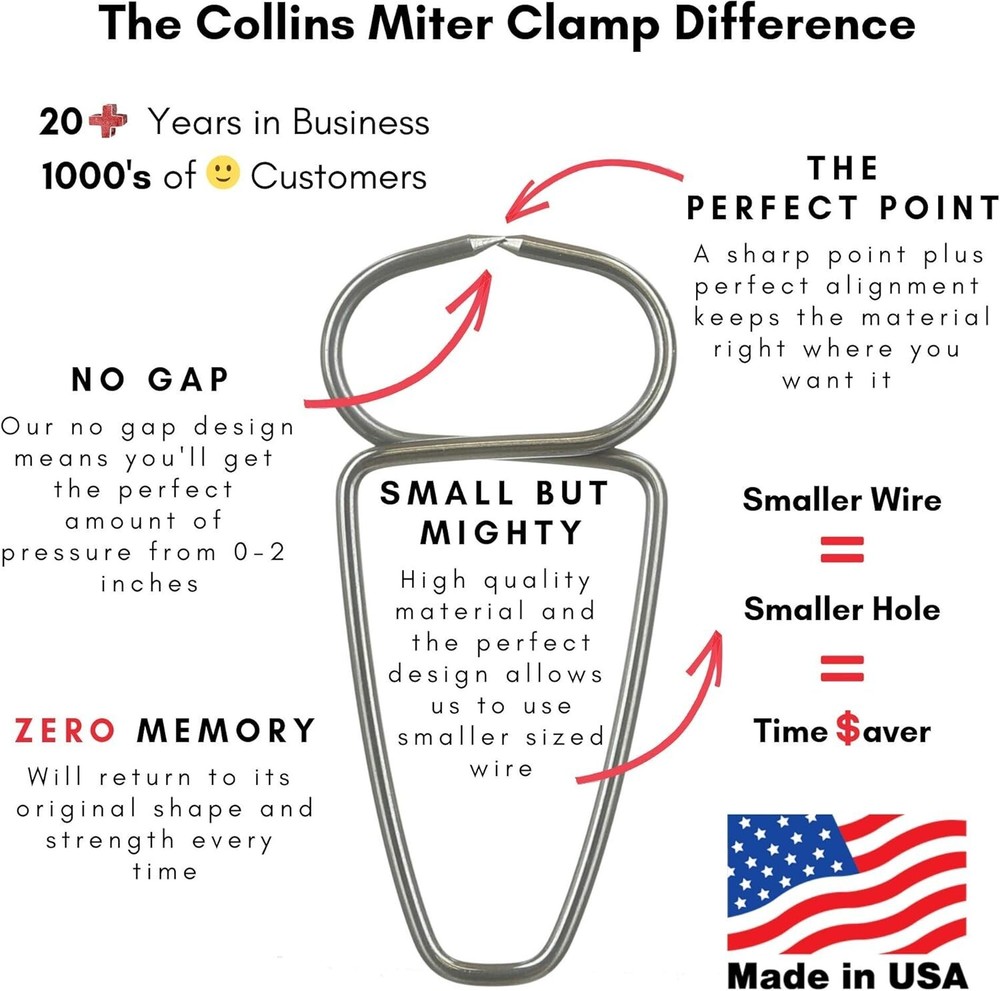 Woodworking Essentials: Collins Pliers and 13 Miter Clamps for Flawless Finishes ‹ › ‹ › ‹ › ‹ › ‹ › ‹ › ‹ › ‹ › Woodworking Essentials: Collins Pliers and 13 Miter Clamps for Flawless Finishes Transform your woodworking projects into masterpieces with our premium Collins Pliers and Miter Clamp set. Say goodbye to uneven edges and hello to perfection! Key Features: New Spring Loaded Pliers: Engineered for precision and ease-of-use, allowing for effortless gripping. 13 Spring Miter Clamps: Smart design that spans from 0 to approximately 2 inches, eliminating the need for multiple sizes. Precision Point Technology: A sharp point that pierces the wood without damaging the fibers, setting us apart from competitors' angled cuts. Stability During Drying: Ensures that your mitered corners stay perfectly aligned while glue dries for seamless finishes. Versatile Applications: Ideal for picture frames, moldings, trim work, and any compound miter – a must-have for every woodworker. Lifetime Guarantee: Invest in quality with confidence; our products are backed by a lifetime warranty. Why Choose Our Woodworking Essentials? A woodworking project deserves nothing less than the finest tools. With our Collins Pliers and Miter Clamps, you're not just investing in tools; you're investing in quality craftsmanship. Designed to withstand the test of time, our pliers and clamps will help you achieve flawless finishes effortlessly. Don’t settle for mediocre finishes – elevate your woodworking experience today with our exquisite tools. Order now and bring unparalleled precision to your projects! Shipping Free & Fast Shipping - We offer free shipping to most of the USA with a normal delivery time of 3-10 businessdays. However, due to various situations, additional delivery time (up to 3 weeks) may be required for some items. Alternative Carriers - We may use alternative carriers (e.g. USPS, FedEx, UPS, etc.) to ensure your package arrives safely and on time. Due to the use of multiple carriers, we are unable to provide a tracking number automatically. Handling Time - Orders are processed and shipped within 1-5 business days of receiving cleared payment. Shipping Restrictions - Shipping to Alaska, Hawaii, Puerto Rico, Guam, and other US territories may incur shipping charges or delivery restrictions. Please contact us before ordering, or your order can be refunded/cancelled. State Restrictions - There may be restrictions based on your state of purchase. For example, certain items may not be shipped to California due to state regulations. Contact for Tracking Updates - If you require tracking updates or have any concerns about the delivery of your order, please feel free to contact us, and we will be happy to assist you. Return Please see our ebay return policy. We do not accept return on most products. This is to avoid customers mis-using ebay returns. All sales are final. Please be sure to check the return policy listed at the top of the listing. In rare cases, we may accept returns, if the buyer pays both ways shipping and 20% restocking fee. If you are un-sure of return policy of a particular item, please ask before buying. Payment We accept all major credit cards, PayPal, and Apple Pay for your convenience. Your payment information is secure and encrypted to ensure a safe and seamless transaction. Please complete your payment within 3 days of purchase to avoid any delays in shipping. Feedback Your feedback is extremely important to us. We strive to provide the best products and customer service possible. If you are satisfied with your purchase, please take a moment to leave us a positive review. If you have any concerns or issues with your order, please contact us before leaving negative feedback. We are committed to resolving any problems and ensuring your satisfaction. Contact Us If you have any questions or concerns, please feel free to reach out to our customer support team. You can contact us through the eBay messaging system. We are available Monday to Friday, 9:00 am to 5:00 pm EST, and we will do our best to respond to your inquiry within 24 hours. Buy it now and enjoy a pleasant shopping experience! UPC: Not Set Model: Not Set Item Width: Not Set Item Length: Not Set Item Height: Not Set Item Diameter: 2 in Item Weight: 11.4 oz Unit Quantity: 1 Material: Wood Brand: Unbranded Type: Clamp Number of Pieces: 13 Size: 2 in Jaw Size: 2 in Manufacturer Warranty: Not Set MPN: Not Set Color: Blue Country/Region of Manufacture: Not Set Unit Type: oz Personalize: Not Set