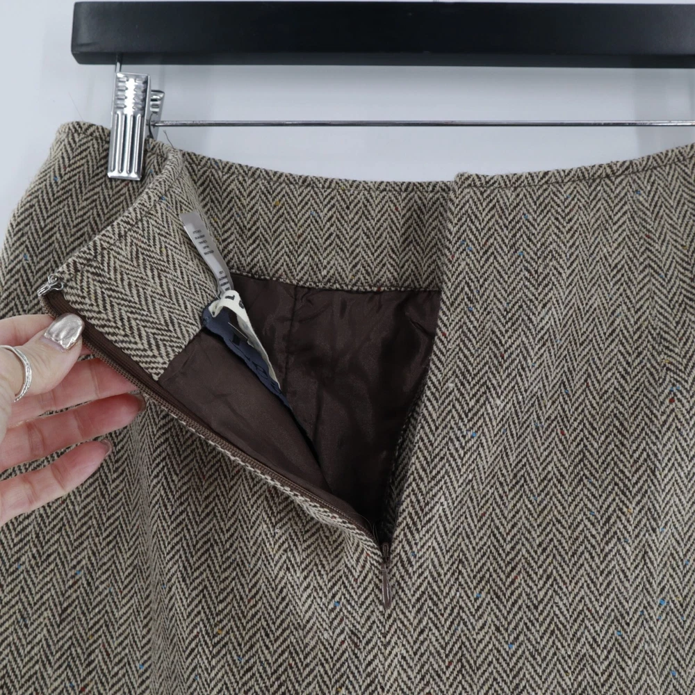 Leaving Soho Wool Tweed Skirt Women's S Beige Brown Polished Academia Old Money Step into the office with this herringbone skirt and instantly channel your inner professor emeritus. With its classic tweed pattern and decorative buttons, this skirt is ready to school everyone on style. • Decorative buttons for added style • Back vent for ease of movement • Zip closure with hook for security • Fully lined for comfort • Chevron pattern Features: wool, tweed, career, polished, academia, business, sophisticated, corporate, warm, chevron, classic, timeless, old money, NWT Size: Womens S Condition: New With Tags New with tags. Please see photos for more details.