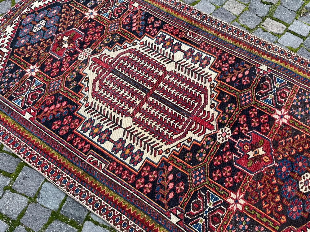 Item Thickness: approximately 0.2" (0.5 cm) Weave: Hand-Knotted Color: Black Size: 3 x 6 ft Department: Boys, Girls, Teens, Adult Style: Bohemian Type: Area Rug Production Technique: Knotted Shape: Rectangle Room: Bedroom, Dining Room, Home Office/Study, Kitchen, Living Room, Nursery Handmade: Yes Pile Height: 0.5 in Culture: Turkey Pattern: Geometric Pile Type: Normal Features: Hand-Knotted Time Period Manufactured: 1960-1969 Brand: Handmade Era: Mid 20th Century (1941-1969) Country of Origin: Turkey Original/Licensed Reproduction: Original Item Length: 77 in Material: 100% Cotton, 100% Wool Item Width: 44 in Regional Design: Turkish Theme: 1960s & 1970s