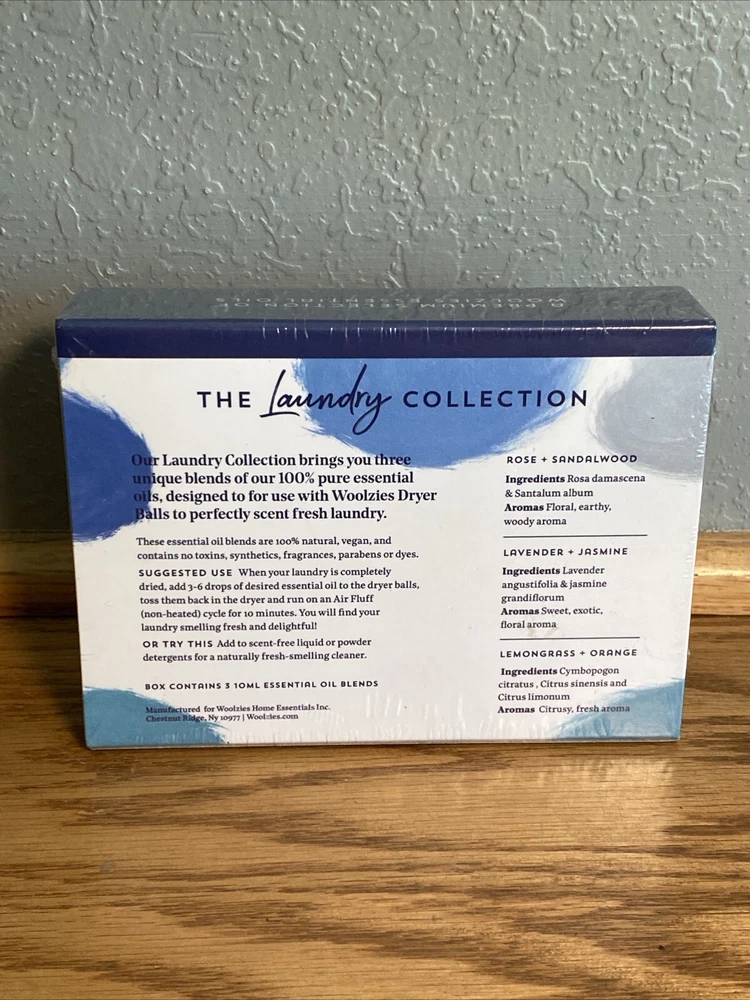 Enhance your laundry routine with the Woolzies Laundry Collection Essential Oil Set. This set includes three packs of 0.34 Fl Oz each, with a refreshing scent that is perfect for any season. The aromatherapy benefits of this set are sure to make your laundry day more enjoyable. The Woolzies Home Essentials manufacturer ensures that this product is of the highest quality, with a pure and authentic aroma. The item model number is 8856 and the package dimensions are 5.16 x 3.78 x 1.42 inches, with a weight of 6.4 ounces. This set is perfect for those who love to add a touch of fragrance to their laundry.