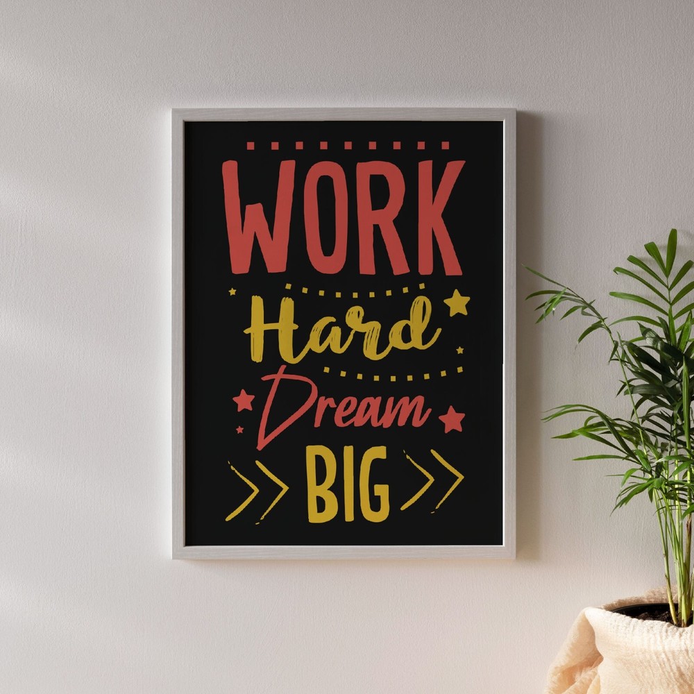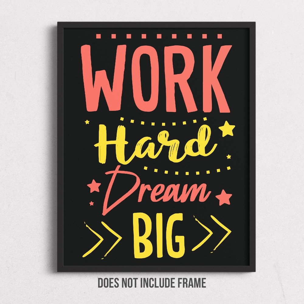 Work Hard Dream Big Motivational Poster Art Print Wall Decor School Teacher