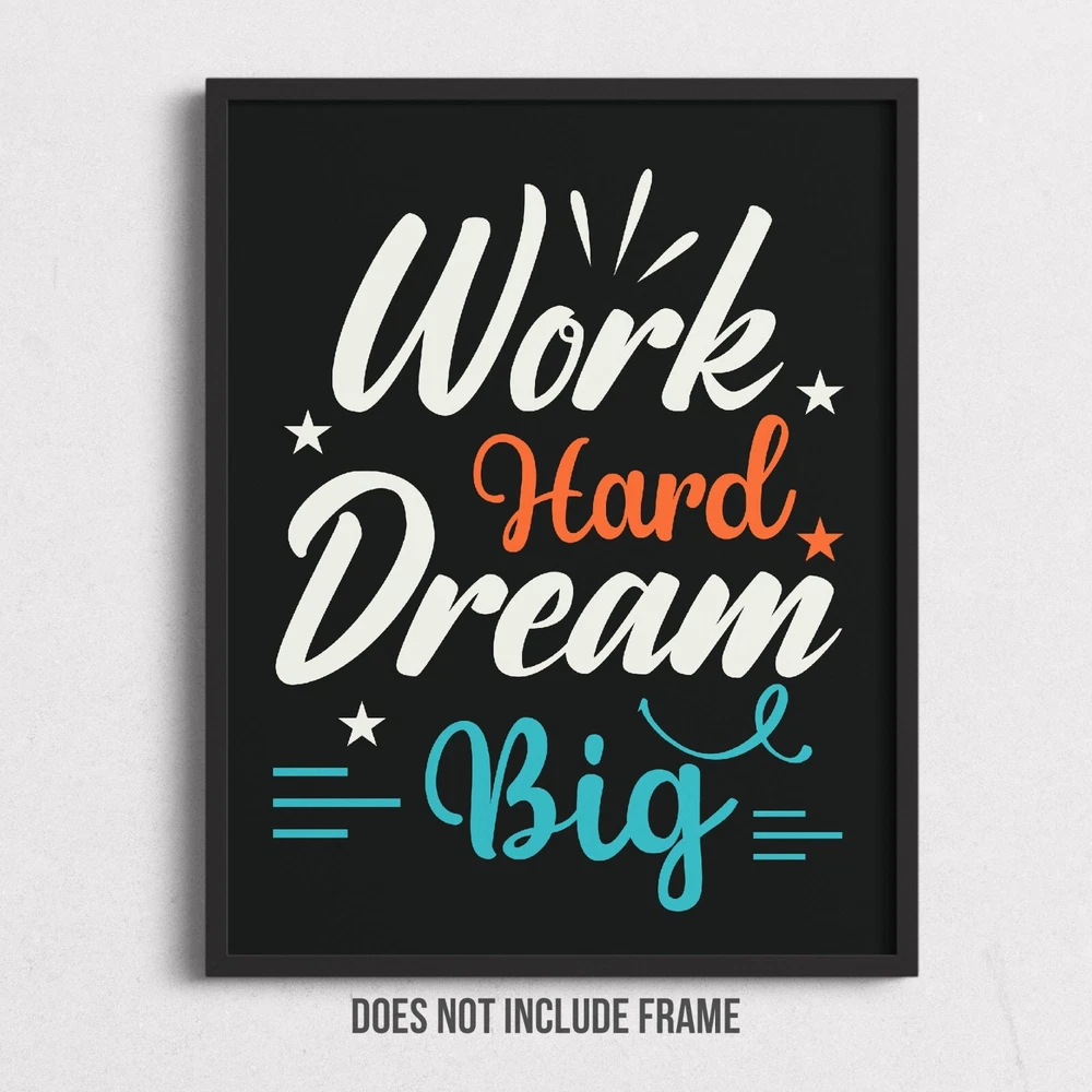 Work Hard Dream Big Motivational Poster Art Print Wall Decor School Teacher