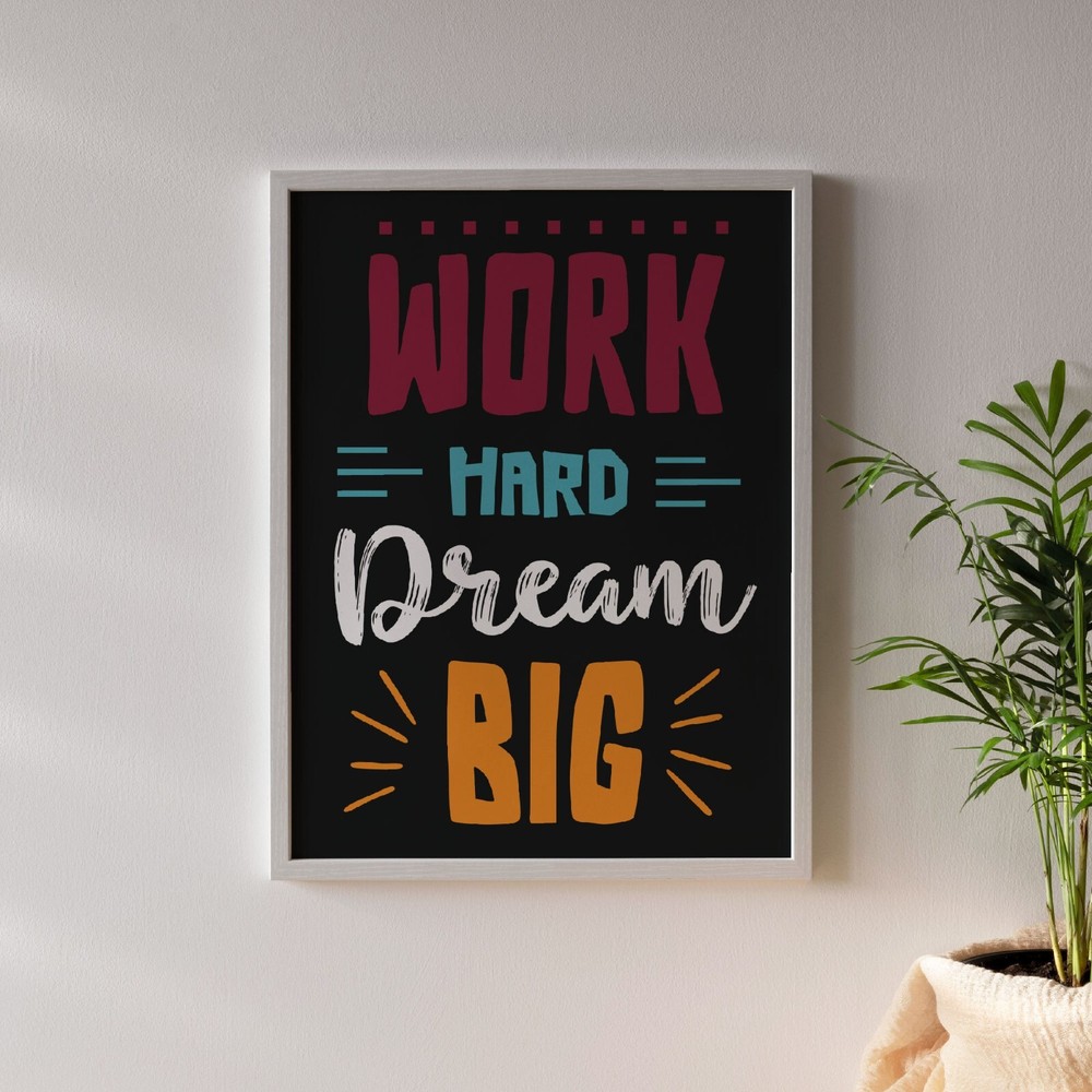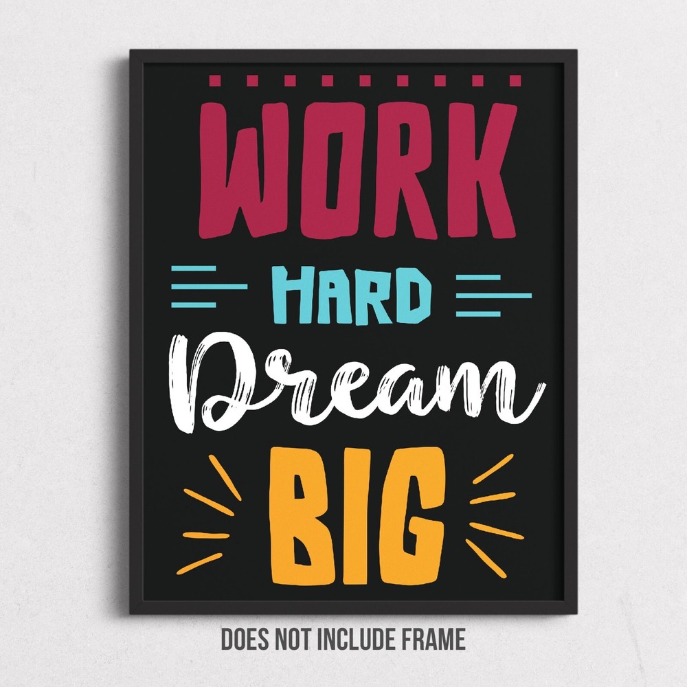 Work Hard Dream Big Motivational Wall Art for School Teachers Inspirational Print Decor