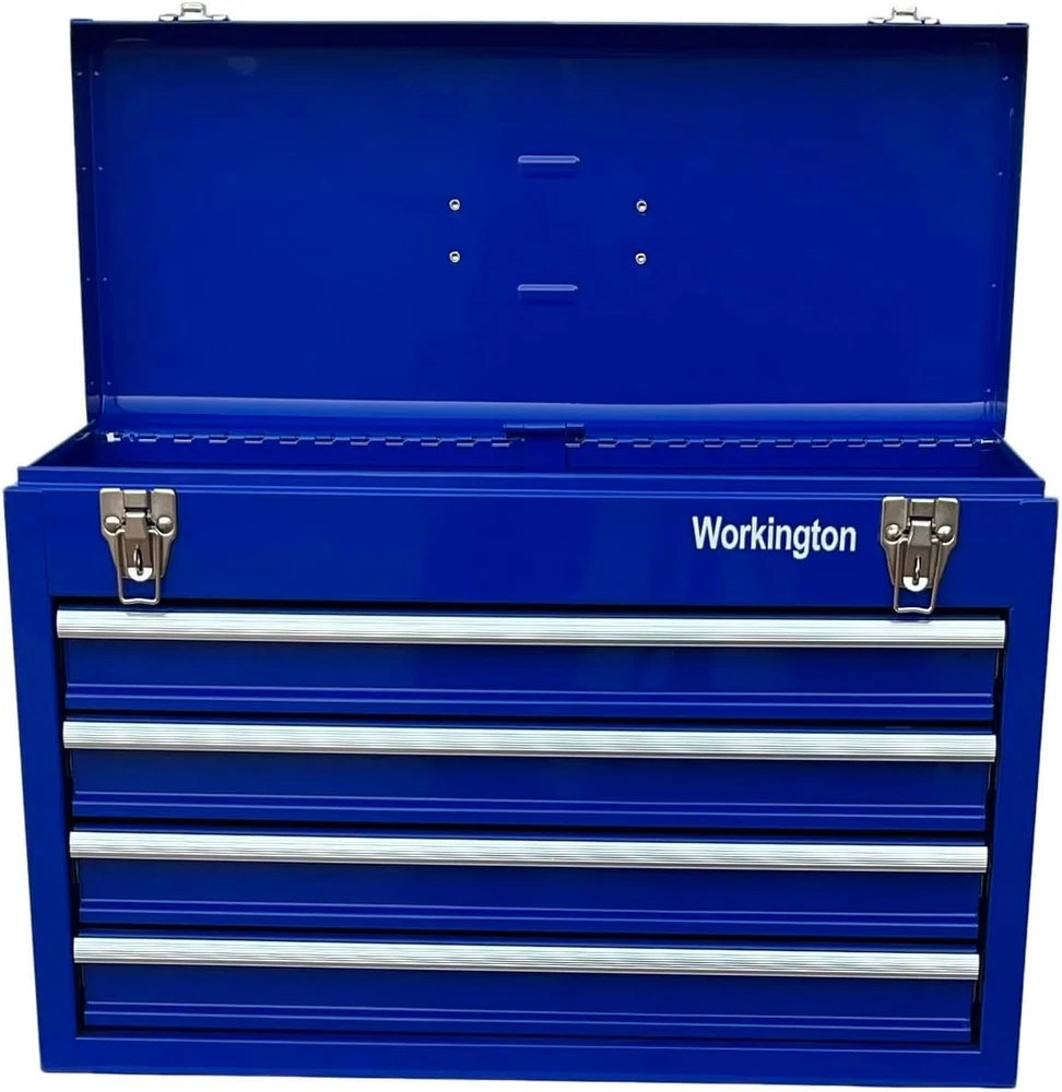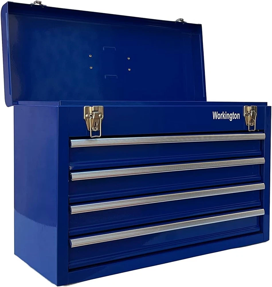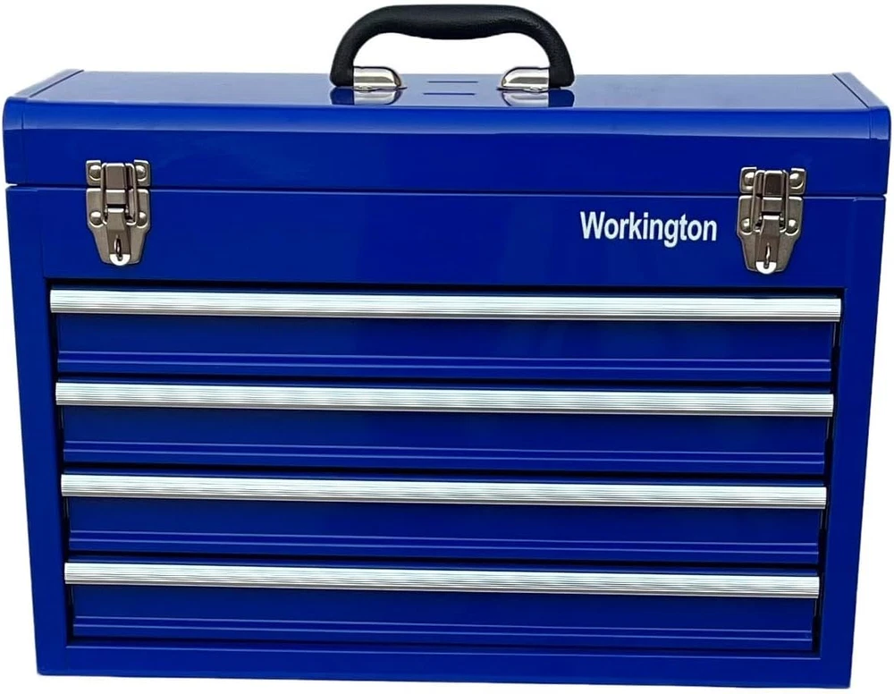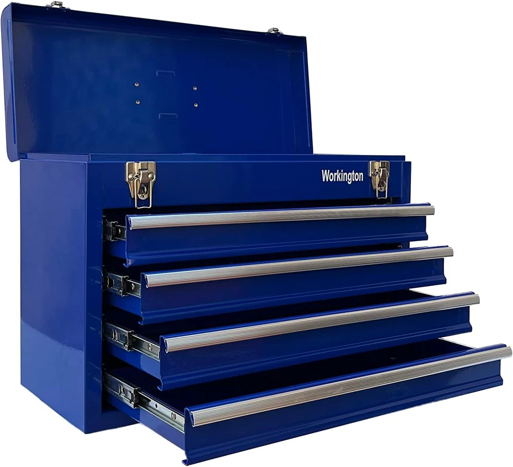 Store New Arrivals Add to Favorite View Feedback Contact Workington Portable Metal Tool Chest with 4 Drawers, 20" 4-Drawer Tool Chest Cabinet with Ball Bearing Drawer Slides, Steel Tool Storage Box Organizer 4004 Blue Description Item model number WKT-4004-BL Country of Origin China Top Material Type Steel Number of Pieces 4 Number of Compartments 4 Assembly Required No Brand Workington Installation Type Freestanding Frame Material Alloy Steel Finish Type Powder Coated Manufacturer Workington Door Style drawer Item Weight 21.6 pounds Is Customizable No Lock Type Latch Number of Drawers 4 Shape Square Special Feature Durable,Portable Material Alloy Steel Style Modern Mounting Type Floor Mount Color Blue Handle Material Metal Base Type Legs Back Material Type Alloy Steel Recommended Uses For Product Tools Included Components 4 Drawers, Top Compartment Product Dimensions 8.6"D x 20.5"W x 14.4"H 4 drawers portable storage tool chest with a comfortable top handle and full-length piano hinge Double latch system with pad lock for extra security All ball bearing drawer slides for smooth and efforless open-to-close of the drawers The tool box is made of 22 guage steel metal for being durable and sturdy Product Dimension: 20-1/2"(Width) x 8-5/8"(Depth) x 14-1/8"(Height) Product Description Workington 4-Drawer Tool Chest Cabinet Workington is seeking to provide storage and organizer solutions for both industrial and DIY fields. This tool chests series is mainly developed as 3 variations, as 4 drawers chest, 6 drawer chests as well as 9 drawers chest. All of our chests are equipped with ball bearing slides,which contributes to smooth and quite action when being pulled out and inside. The central cam lock mechanism system is added to secure the cabinet in place. Besides, two comfortable side handles make it being portable. Workington Portable Metal Tool Chest with 4 Drawers, 20" 4-Drawer Tool Chest Cabinet with Ball Bearing Drawer Slides Stable and Sturdy: The tool box is made of 22 guage steel metal for being durable and sturdy Comfortable Grip Side Handle: Comfortable grip side handle for being portable Central Cam Lock Mechanism System: Central cam lock mechanism system for extra security Meet Your Tool Storage Need: Plenty of storage space for the 4 drawers and top compartment Specifications Drawer dimension: 17-5/8(W) x 7-5/8(D) x 2-1/8(H) inch Product dimension: 20-1/2(W) x 8-5/8(D) x 14-1/8(H) inch Key Features Ball Bearing Slides All ball bearing drawer slides for smooth and efforless open-to-close of the drawers Top Grip Handles Comfortable grip top handle for being portable Double Latch System Double latch system with pad lock for extra security Four Drawers Four Drawers for plenty of storage sapce ABOUT US We offer the best prices around on high quality products. Our E-store includes media such as books, movies, music and games while offering electronics, toys, sporting apparel, clothing, tools, general home, garden items and more. SHIPPING We are always working hard to ensure your package arrives as soon as possible. Please understand that some factors like weather, high postal traffic, and the performance of shipping companies are outside of our control. We offer free shipping to the lower 48 states and ship within 2 business days of payment, usually sooner. We do not accept P.O. Boxes. Please provide a physical address. RETURNS We offer a 30-Day Return Policy on items which you are not completely satisfied with. You have the option for a full-refund or an exchange of the item. No returns are available on items shipped outside of the USA. PAYMENT We accept PayPal. CONTACT US This page content is yet to come Please ad us to your favorite seller and visit again later Thank You CUSTOMER SATISFACTION We try our very best to make sure every customer is completely satisfied. If there's a problem, message us! We're happy to help.