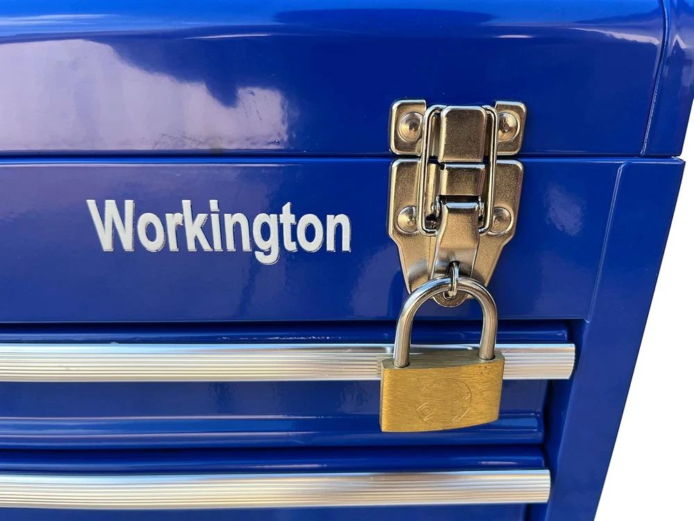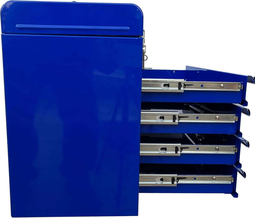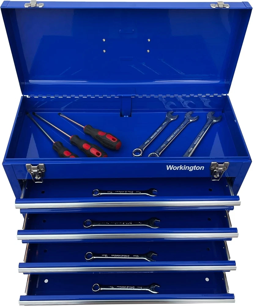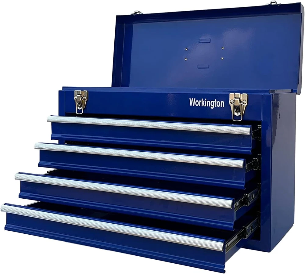 Store New Arrivals Add to Favorite View Feedback Contact Workington Portable Metal Tool Chest with 4 Drawers, 20" 4-Drawer Tool Chest Cabinet with Ball Bearing Drawer Slides, Steel Tool Storage Box Organizer 4004 Blue Description Item model number WKT-4004-BL Country of Origin China Top Material Type Steel Number of Pieces 4 Number of Compartments 4 Assembly Required No Brand Workington Installation Type Freestanding Frame Material Alloy Steel Finish Type Powder Coated Manufacturer Workington Door Style drawer Item Weight 21.6 pounds Is Customizable No Lock Type Latch Number of Drawers 4 Shape Square Special Feature Durable,Portable Material Alloy Steel Style Modern Mounting Type Floor Mount Color Blue Handle Material Metal Base Type Legs Back Material Type Alloy Steel Recommended Uses For Product Tools Included Components 4 Drawers, Top Compartment Product Dimensions 8.6"D x 20.5"W x 14.4"H 4 drawers portable storage tool chest with a comfortable top handle and full-length piano hinge Double latch system with pad lock for extra security All ball bearing drawer slides for smooth and efforless open-to-close of the drawers The tool box is made of 22 guage steel metal for being durable and sturdy Product Dimension: 20-1/2"(Width) x 8-5/8"(Depth) x 14-1/8"(Height) Product Description Workington 4-Drawer Tool Chest Cabinet Workington is seeking to provide storage and organizer solutions for both industrial and DIY fields. This tool chests series is mainly developed as 3 variations, as 4 drawers chest, 6 drawer chests as well as 9 drawers chest. All of our chests are equipped with ball bearing slides,which contributes to smooth and quite action when being pulled out and inside. The central cam lock mechanism system is added to secure the cabinet in place. Besides, two comfortable side handles make it being portable. Workington Portable Metal Tool Chest with 4 Drawers, 20" 4-Drawer Tool Chest Cabinet with Ball Bearing Drawer Slides Stable and Sturdy: The tool box is made of 22 guage steel metal for being durable and sturdy Comfortable Grip Side Handle: Comfortable grip side handle for being portable Central Cam Lock Mechanism System: Central cam lock mechanism system for extra security Meet Your Tool Storage Need: Plenty of storage space for the 4 drawers and top compartment Specifications Drawer dimension: 17-5/8(W) x 7-5/8(D) x 2-1/8(H) inch Product dimension: 20-1/2(W) x 8-5/8(D) x 14-1/8(H) inch Key Features Ball Bearing Slides All ball bearing drawer slides for smooth and efforless open-to-close of the drawers Top Grip Handles Comfortable grip top handle for being portable Double Latch System Double latch system with pad lock for extra security Four Drawers Four Drawers for plenty of storage sapce ABOUT US We offer the best prices around on high quality products. Our E-store includes media such as books, movies, music and games while offering electronics, toys, sporting apparel, clothing, tools, general home, garden items and more. SHIPPING We are always working hard to ensure your package arrives as soon as possible. Please understand that some factors like weather, high postal traffic, and the performance of shipping companies are outside of our control. We offer free shipping to the lower 48 states and ship within 2 business days of payment, usually sooner. We do not accept P.O. Boxes. Please provide a physical address. RETURNS We offer a 30-Day Return Policy on items which you are not completely satisfied with. You have the option for a full-refund or an exchange of the item. No returns are available on items shipped outside of the USA. PAYMENT We accept PayPal. CONTACT US This page content is yet to come Please ad us to your favorite seller and visit again later Thank You CUSTOMER SATISFACTION We try our very best to make sure every customer is completely satisfied. If there's a problem, message us! We're happy to help.