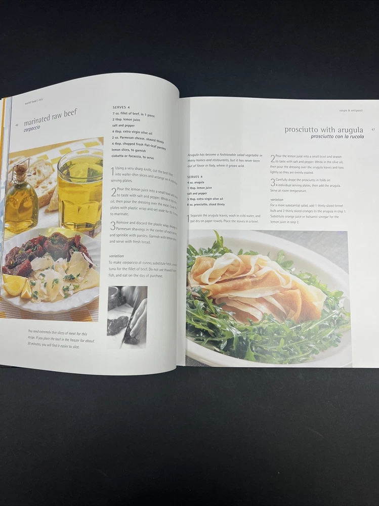 Explore the flavors of Italy with this beautiful hardcover cookbook, World Food Italy by Linda Doeser. Discover the secrets of Italian cuisine with over 250 pages of mouth-watering seafood recipes, regional specialties, and national cooking styles. This first edition book, published in 2003 by Readerlink Distribution Services, LLC, is illustrated with stunning visuals and is perfect for young adults and adults who love to cook and experiment with food. Immerse yourself in Italian culture through the pages of this vintage cookbook, which includes the original English language text. Add World Food Italy to your collection of cookbooks and transform your kitchen into a culinary destination.