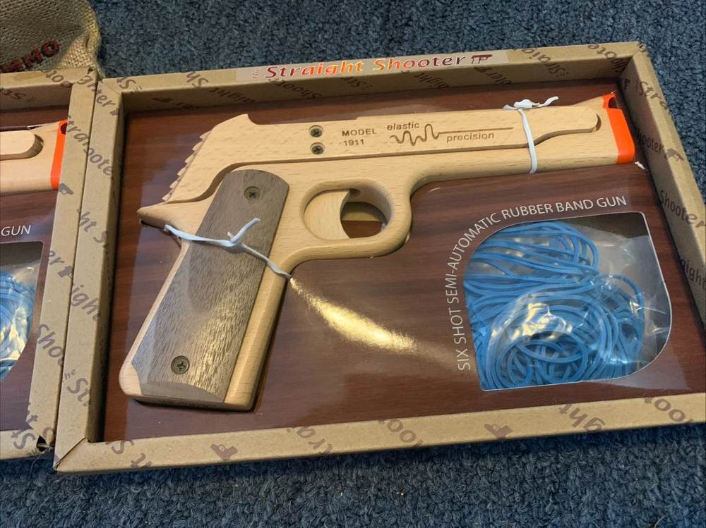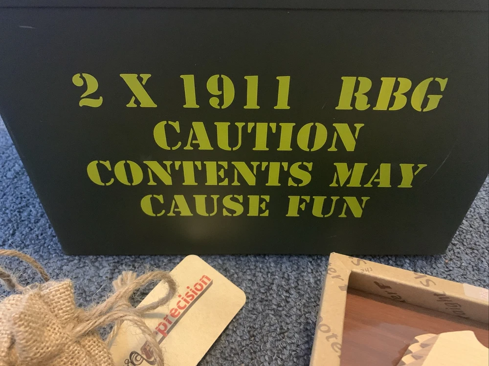 This is the perfect gift set for any indoor game enthusiast. It includes two Elastic Precision 1911GIFTCAN models, packed in a M2A1 50cal Ammo Can. These rubber band guns are sure to provide hours of fun and entertainment. The brand and model of these guns are top-notch, ensuring that they will perform optimally and last for a long time. Whether you are looking for a gift for a child or an adult, this set is sure to please. Get ready for endless fun and excitement with these amazing rubber band guns! Condition is New - in all the original packaging ! Includes 2 pistols , plus baggies of more bands and parts. Please check the pics ! Make sure this is what you’re wanting. so use buy it now and get this on the way fast. That's it , thanks for looking. Attention Buyers and Bidders ! Please review the pictures. Everything included in this listing has been shown in the pictures. There are no other parts included beyond what is pictured. If an item at one time was to include other accessories or parts that are not pictured, such as batteries , bottles , straps or memory cards, then they are not included, I don't have them. Please make no assumption that there are any other items that will be included. I try to make sure my descriptions are clear and the pictures show what is in part of the listing. It is against Ebay policy to demand additional items that are not listed or shown so I urge you to review the listing. Unpaid item assistant opens a case automatically after 4 days if not paid in a few days. So please take care of making payment in a timely manner. I want us both happy with the transaction and I encourage everyone to ask any questions before the listing ends if there is any confusion on what is included in the listing. I can accept returns if you’ve ordered the wrong item. All Items must be in the same condition as received. If an item has been used I’ll need to review the return request as items must be re-sellable and thus in the exact same condition as originally listed. Check my feedback - I ship fast and most items are described accurately ! So , with that said , if there is an issue with a purchase , have some patience, contact me and I'll do my best to make it right. Thanks so much and I appreciate the business.