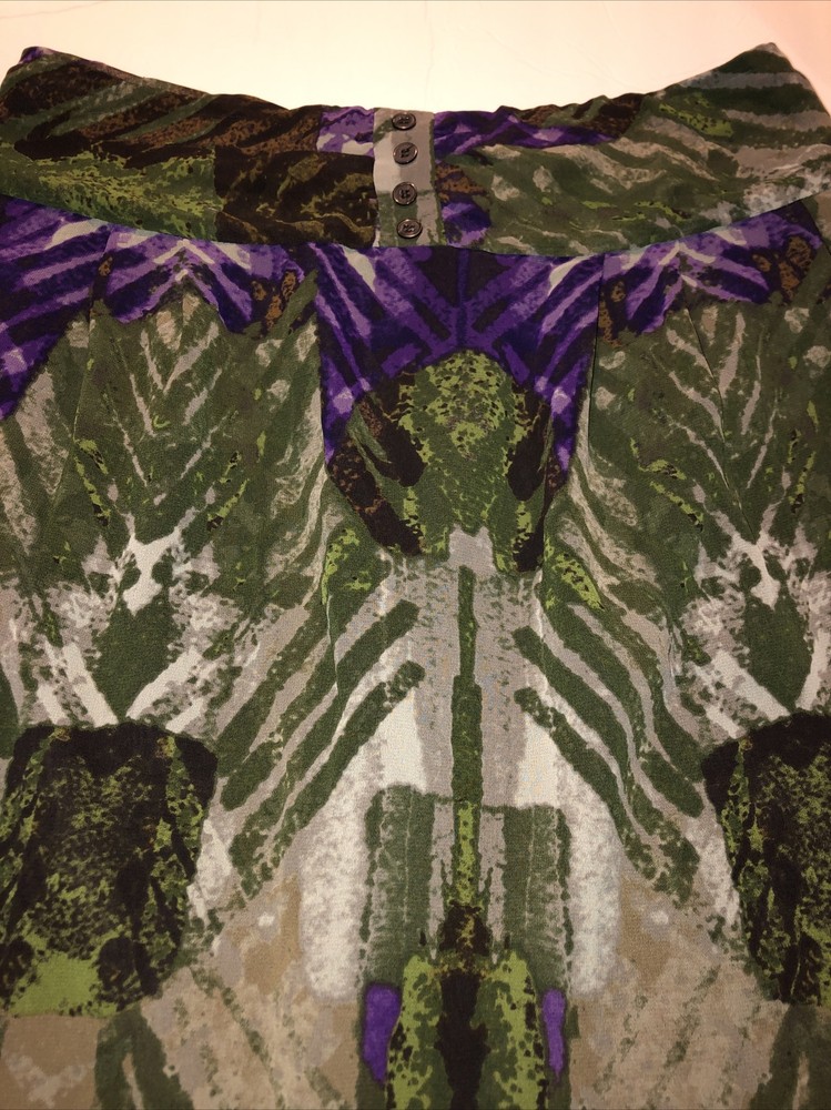 Worthington Womens Pencil Skirt Abstract Purple Green Brown Pockets Polyester 6. Condition is "Pre-owned". Shipped with USPS Mail.