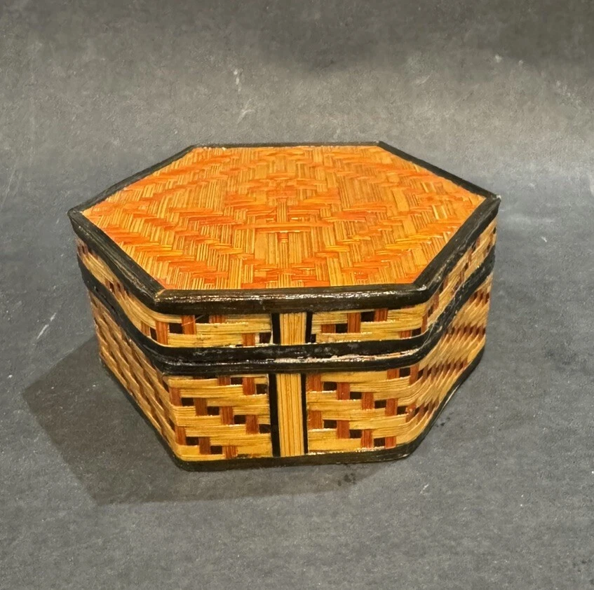 Vintage Black Lacquered Hand-Painted Birds of Paradise Trinket Box