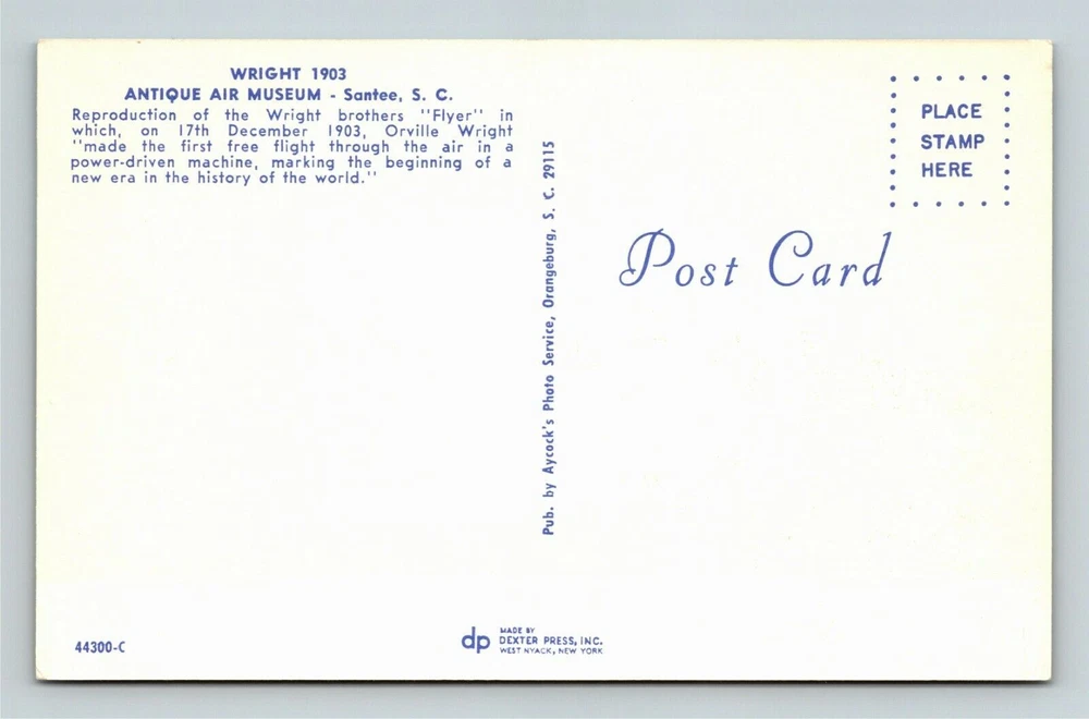Wright 1903 Flyer Reproduction Aircraft Vintage Souvenir Postcard