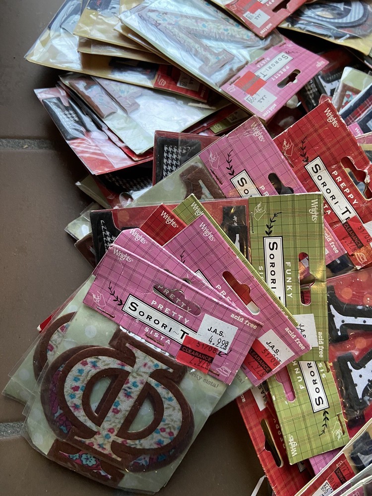Wrights Sorori-T Acid Free Greek Letter Stickers Sorority - Lot of 83 Packages. Each package has at least 2 stickers. These are all new and sealed but the packages have some water damages. Please view the pictures closely as this is the exact lot you will be receiving. Our home is a smoke free home.